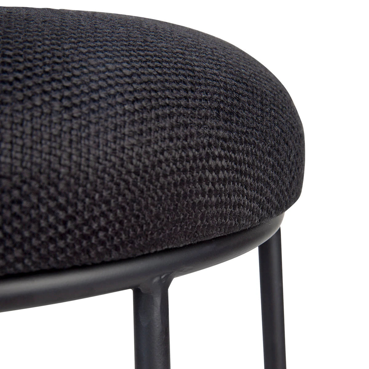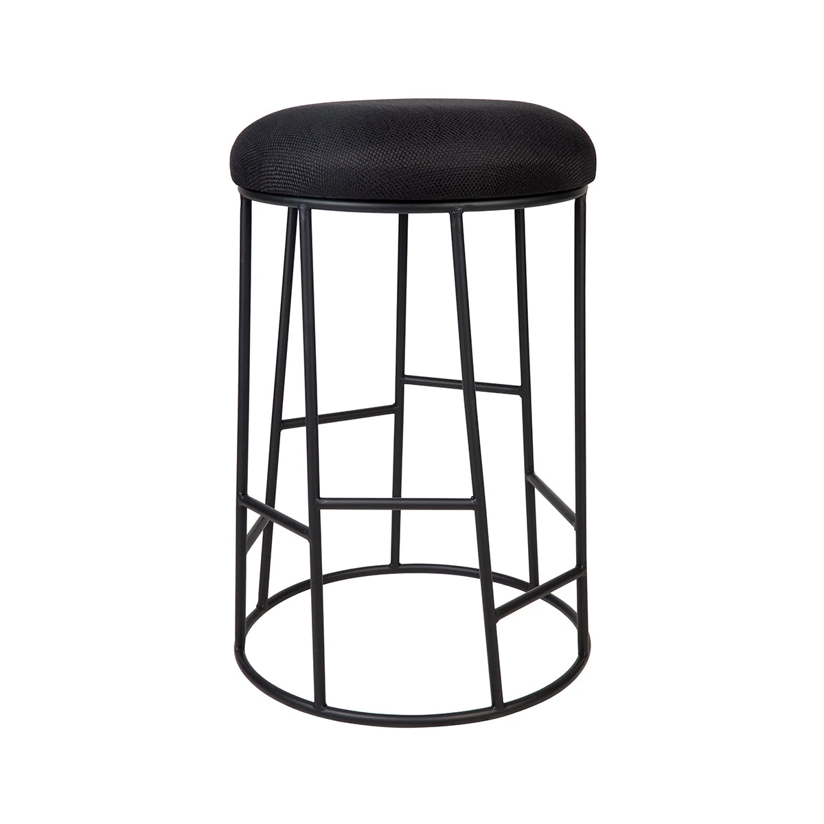 Featuring an aesthetically pleasing design, the Aiden kitchen stool is a perfect choice for kitchens and beneath counter tops. It showcases black steel base with a geometrical shape and features a black linen mix cushion for enhanced comfort and quality. This piece also has varying height tubular steel footrests for added convenience. Let the Aiden kitchen stool elevate your urban oasis with its chic look.