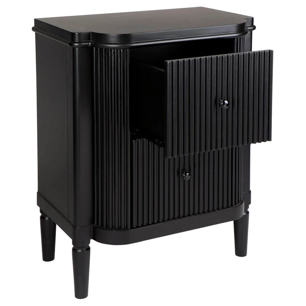 Inspired by Art Deco, the Arielle bedside table in black exudes a classic and elegant aesthetic with contemporary flair. Its finely crafted timber detailing and stylized dots create a sophisticated finish and open up a vast array of interior design possibilities. Quality craftsmanship and attention to detail make this piece truly special.