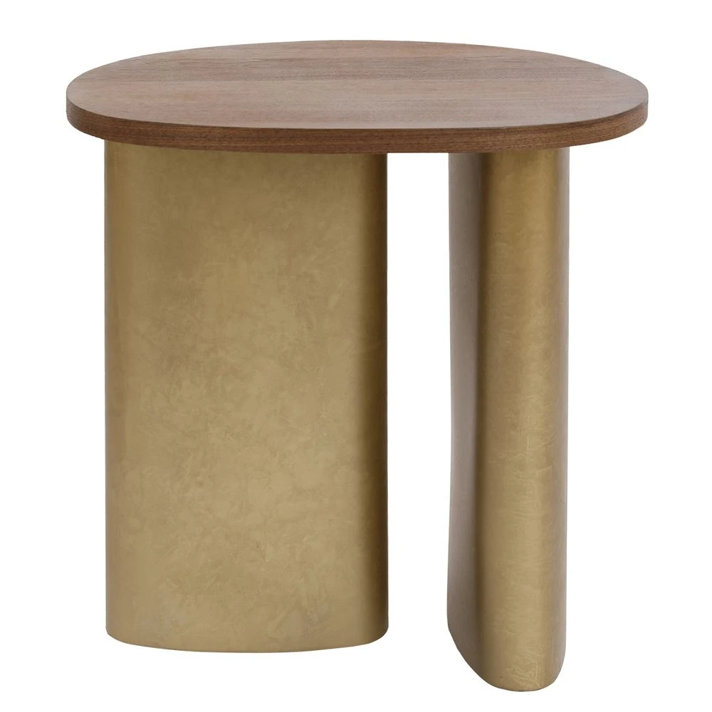 Transform your living space with this elegant sculptural side table, available in two sizes for ultimate versatility. Featuring a walnut veneer top and a modern antique brass-finished base, these tables blend timeless sophistication with contemporary design. Their asymmetrical shapes and luxurious finishes make them perfect as standalone pieces or when paired together for a layered look. Ideal for showcasing decor or serving as functional accents, these side tables bring warmth and style to modern and classic interiors alike.
