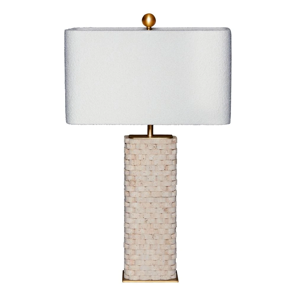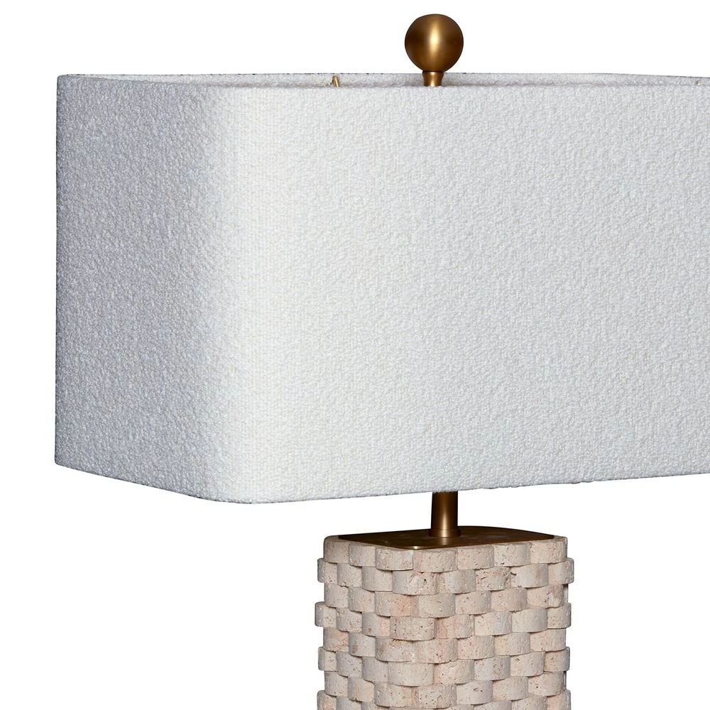 Enhance your space with the elegant Belgrade table lamp, featuring a finely textured marble base in a sophisticated checkered design. The lamp’s soft white boucle shade diffuses light gently, creating a warm and inviting ambiance. Complete with brass Harp and Finial and sleek pedestal base. Ideal for modern and contemporary interiors, this lamp serves as both a functional lighting solution and a stylish décor accent.