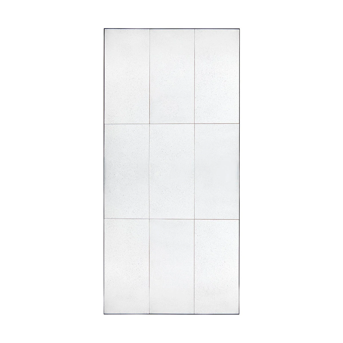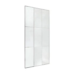 The simplicity of this floor mirror is encapsulated in the black powdercoated iron frame with nine preciously inlaid panels of bevelled antique mirror. This floor mirror leans against the wall perfectly in any part of your home