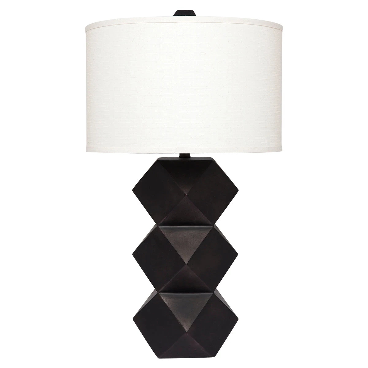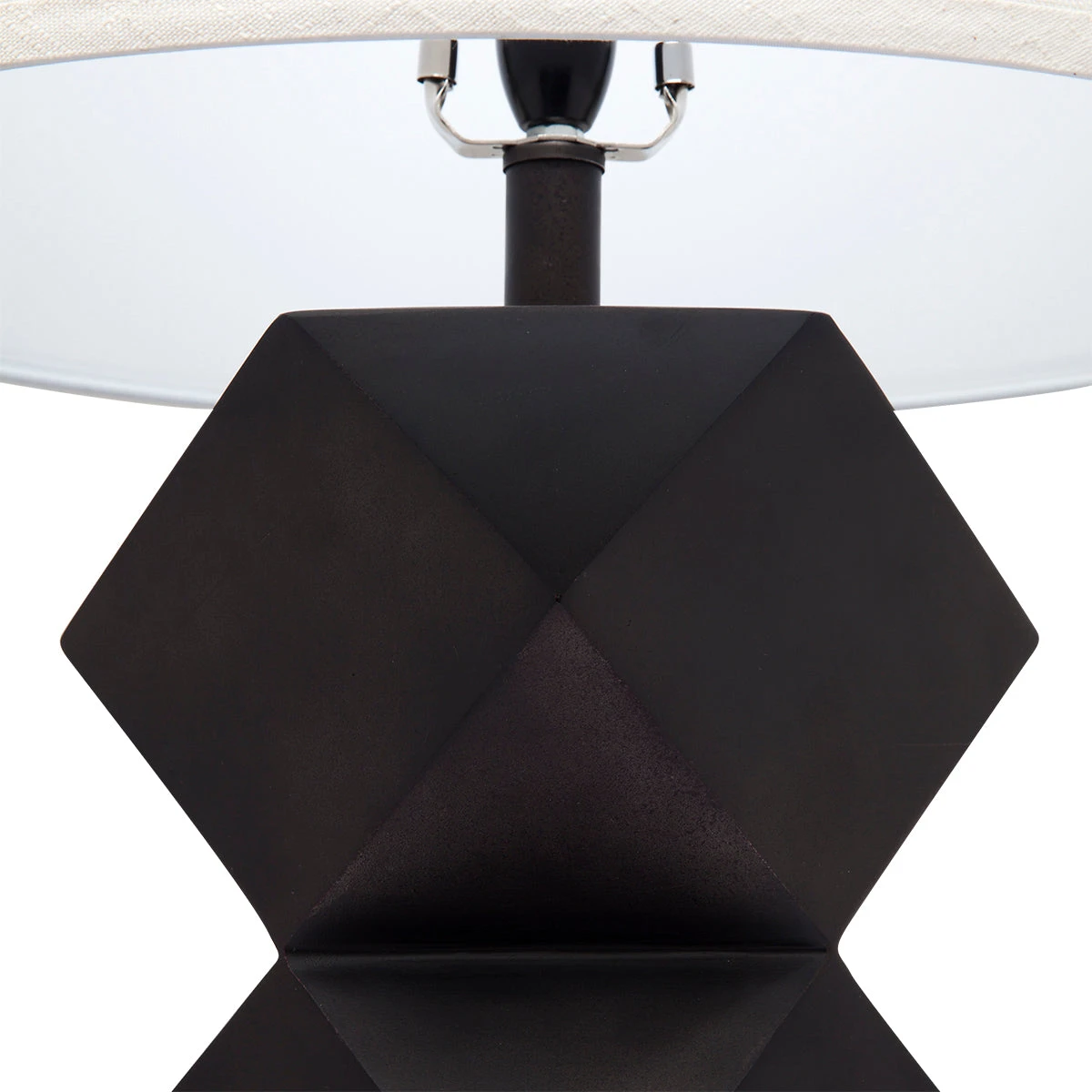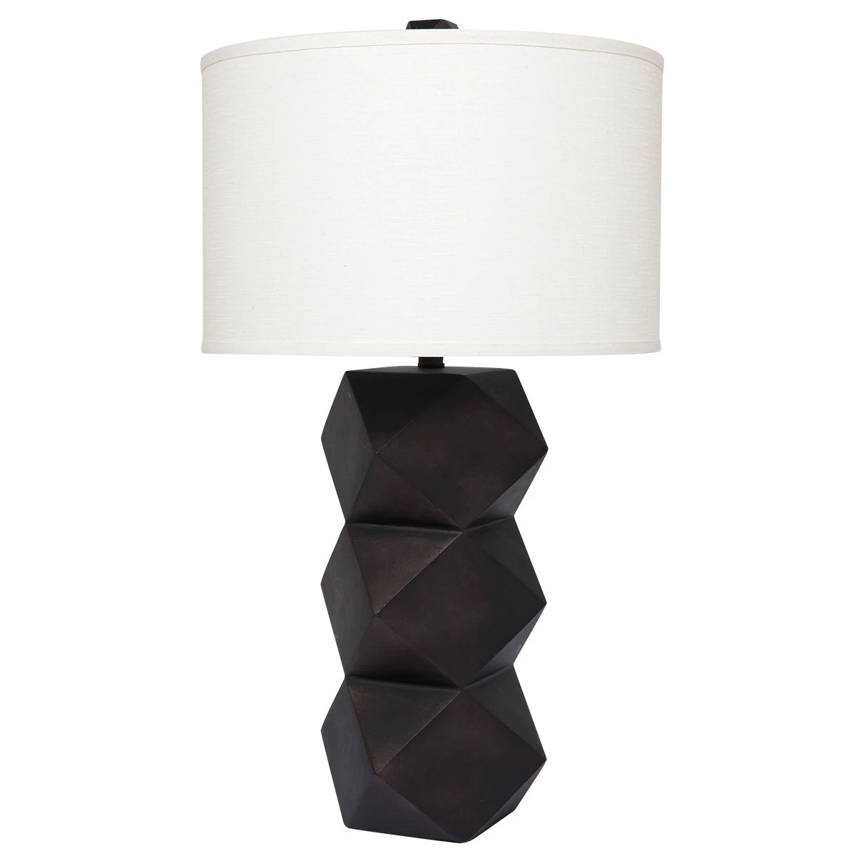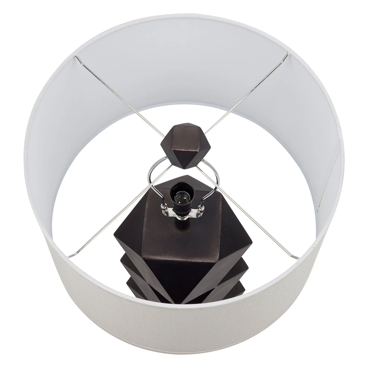 Mutli-faceted Table Lamp will add a strong presence to any room. Crafted from resin with a bronzed smooth finish and paired with a Natural Linen drum shade. This contemporary geometric table lamp would be suited to most settings. An interesting piece of work.
