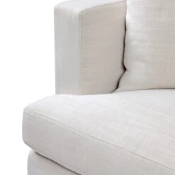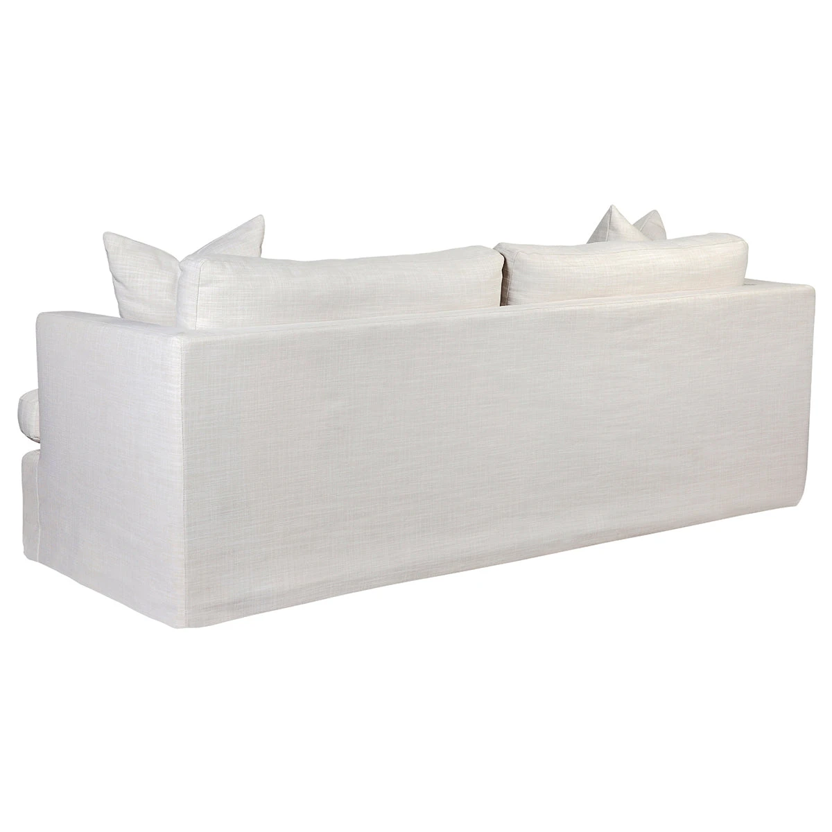 Off white linen blend 3 seater slip cover sofa. Comfortable soft seating and back with feather and foam fill. Hardwood frame with inner spring suspension. Slip cover with tailored sides are easy to remove for cleaning. Some assembly is required. Professional dry cleaning services recommended. Do not tumble dry.