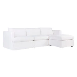 White linen slip cover modular sofa. Comfortable soft seating & back with feather & foam fill. Solid hardwood frame with inner spring suspension. Suits most décor from Hamptons, coastal and contemporary living. Slip cover with tailored sides are easily removed for cleaning. Includes a matching scatter cushion. Create your own style modular by adding pieces of the Birkshire range. Includes one matching scatter cushion.