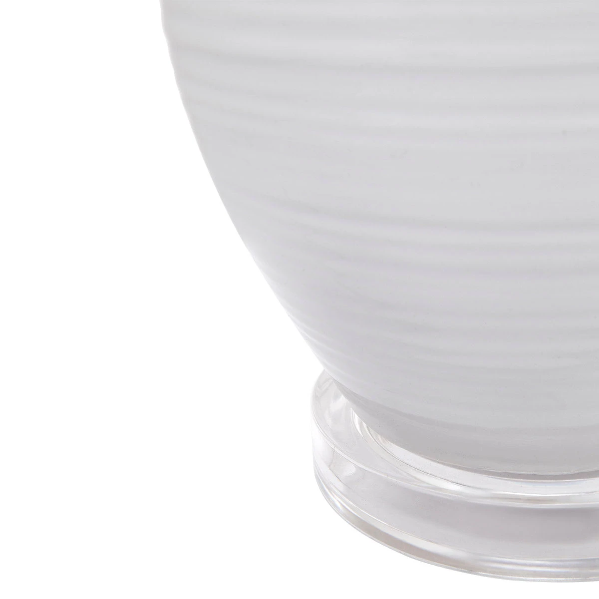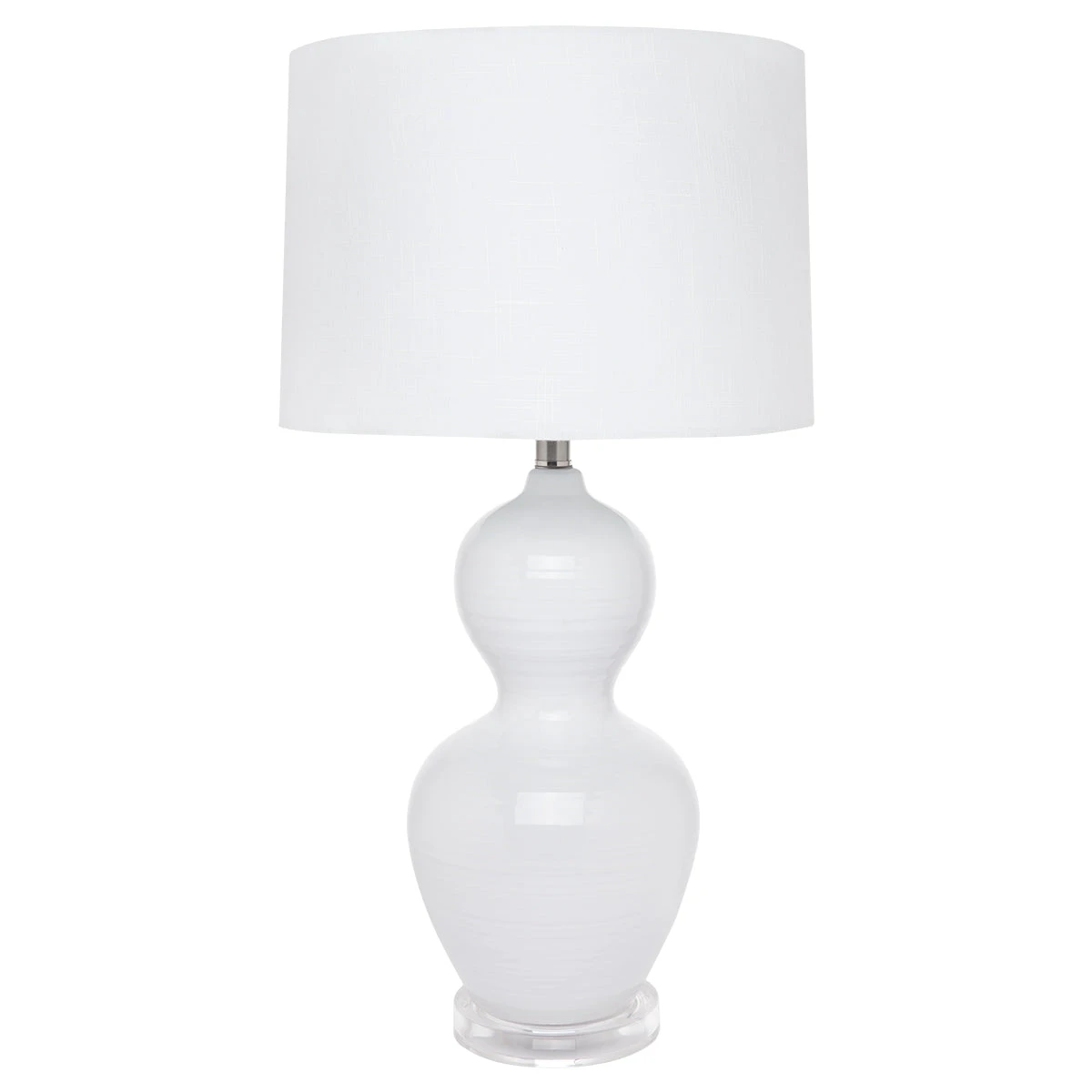 Voluptuous curves make for a striking silhouette on the Bronte table lamp. Offering simple luxury, the subtle ribbing on the white glazed ceramic base offers a delicate texture reminiscent of wave washed sands. Mounted into a clear acrylic base, the Bronte table lamp will set the scene of your contemporary coastal oasis. A soft to touch linen shade in pure white, ever so slightly tapered, completes the design.