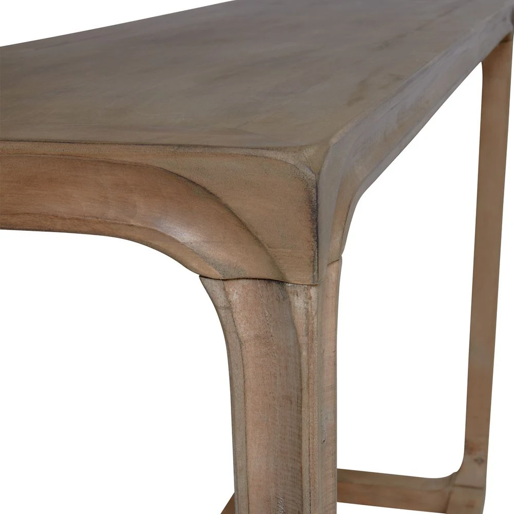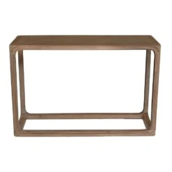 Enhance your interior with this sleek and minimalist timber console table. Crafted from solid timber, it features a rectangular top with smooth edges and an open-frame base, providing a modern yet rustic aesthetic. Perfect for entryways or living rooms, its versatile design blends seamlessly with various styles, offering both form and function. The natural timber grain adds warmth and character, making it an essential piece for any home.