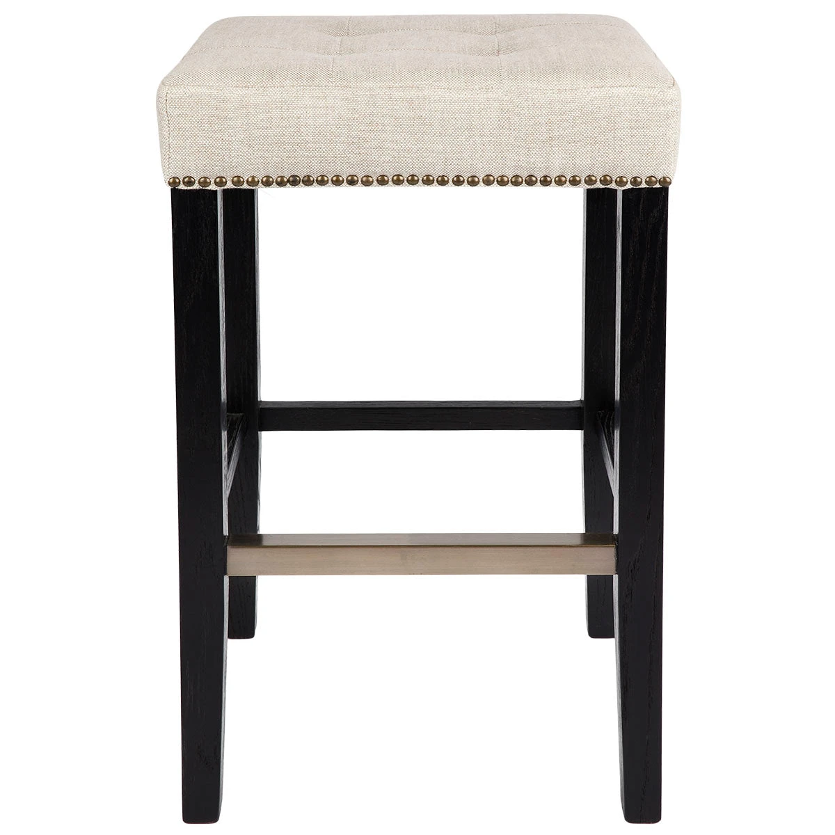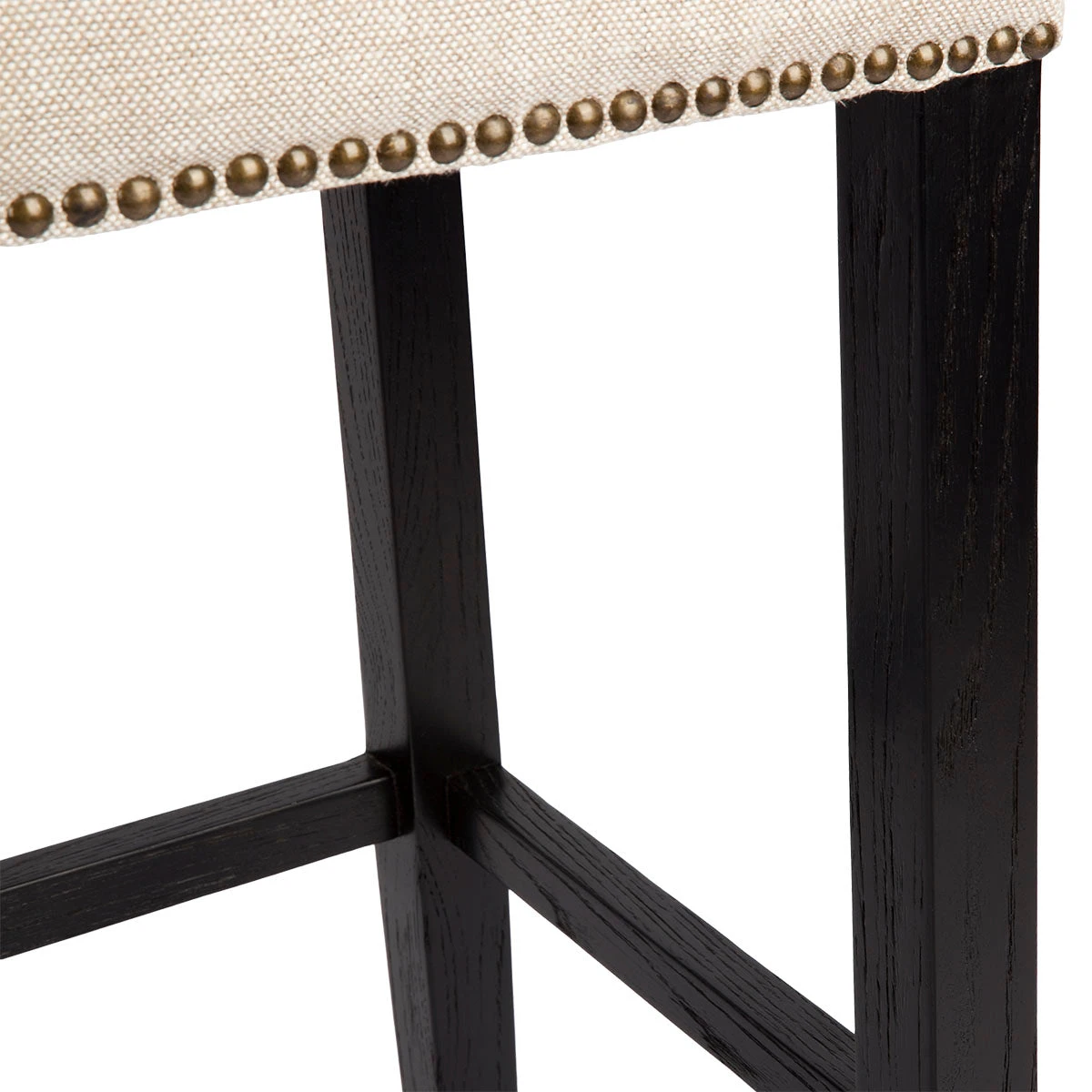 This luxury bar stool stands tall at 76cm on an elegantly tapered solid birch frame in a rich black painted finish. Refined details like the brushed bronze studs and brass finished footrest add subtle glamour while the pure linen upholstered seat in a gorgeous natural texture with tufted detailing adds classic charm. For added comfort, the Canyon black bar stool features a high-density, foam-filled cushioned seat bringing form, function and elegance to your bar or kitchen zone.