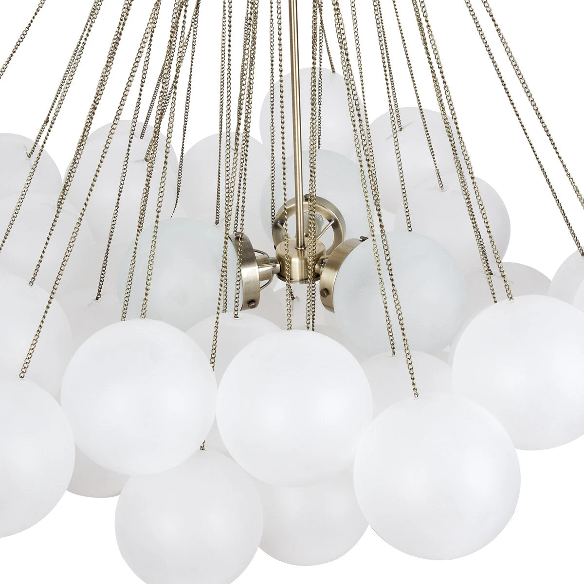 Creating a soft luminous form, the cloud pendant transforms your ordinary ceiling into a cloud-filled sky. Glass orbs are frosted by hand to create this splendid and delicate pendant, unique in design and a true piece of art. Reminiscent of a dreamy cloud a soft glow is refracted from central light sources through to the surrounding cluster of orbs.