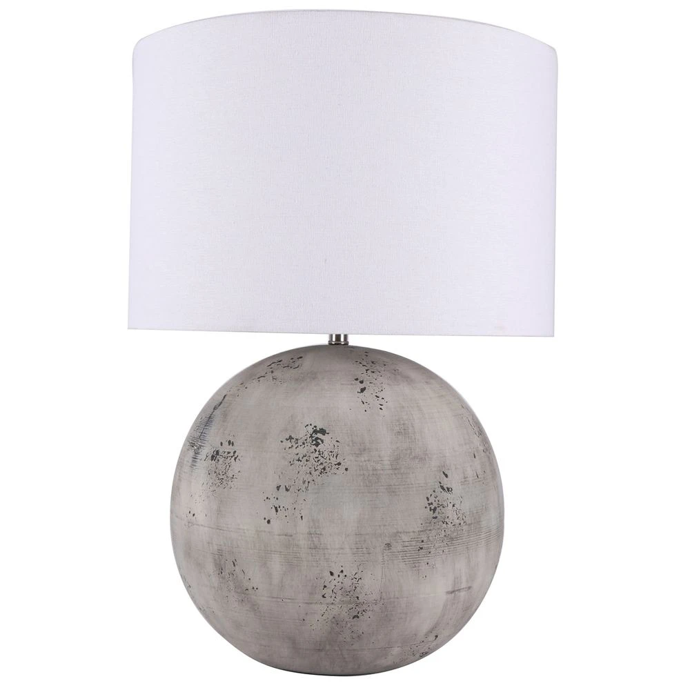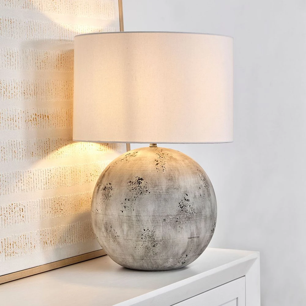 Add a touch of industrial charm to your space with this distinctive table lamp. Crafted with a concrete-like finish, its round base features a textured, weathered look that brings a modern, edgy aesthetic to any room. Paired with a crisp white fabric shade, this lamp provides soft, ambient lighting, perfect for creating a contemporary yet cosy atmosphere in your living room or bedroom.