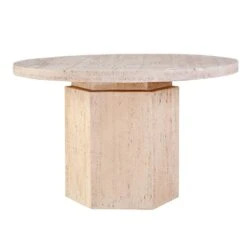 Introducing the Crete Coffee Table, a stunning addition to any living space. Made from genuine travertine, this coffee table boasts a unique texture and organic finish that exudes warmth and sophistication. Its sturdy round top and geometric base make it a functional and stylish statement piece, perfect for modern, minimalist, or earthy interiors. Elevate your decor with this timeless piece that will surely impress.