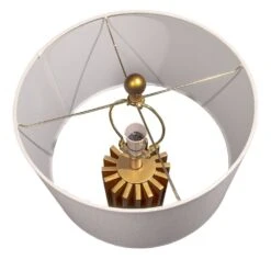 The Croton table lamp features a bold, sophisticated profile consisting of linear forms in a cylindrical formation. Paired with a perfectly proportioned off-white linen look tapered drum shade, the matt gold painted finish of the poly resin base takes centre stage with its distinct sense of glamour. A statement in modern luxe, the harp and finial hardware complete the look adding a sense of refined elegance to the Croton table lamp.