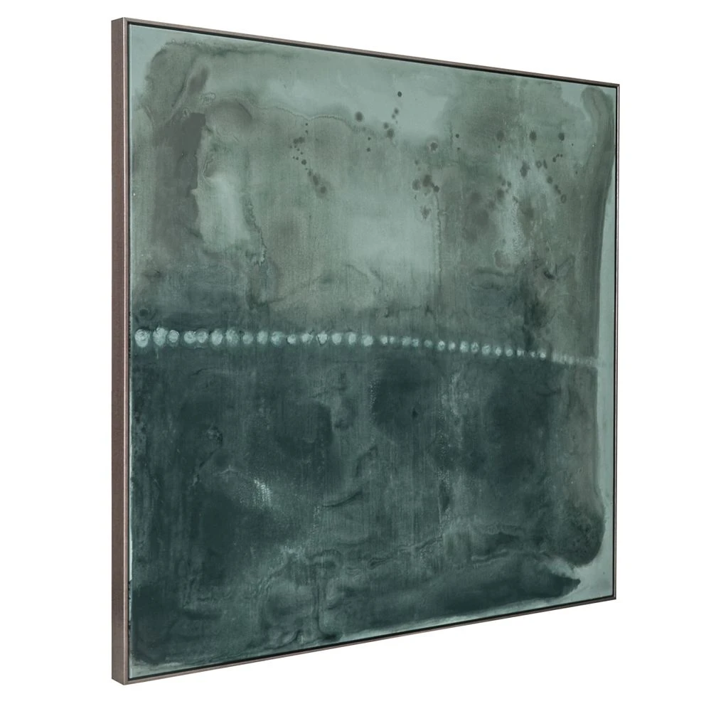 Green symbolizes harmony, tranquillity and renewal. A soothing, symphony of deep moody tones blur together in Deep Greens oil on canvas to create a serene and mystical composition with a natural sense of depth and space. Mounted in an elegant antique gold shadow box frame, Deep Greens is expertly painted with oil on canvas and designed to compliment a range of interiors with its mesmerising tones of nature.
