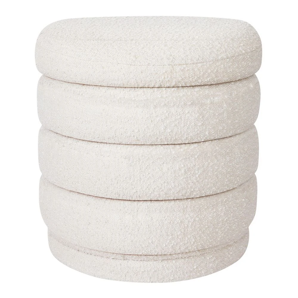 Upholstered in a gorgeously tactile white boucle fabric, the perfectly proportioned Demi stool lends a sense of sophistication to any space. Designed with an effortlessly chic cosmopolitan mood in mind, the panelling detail of the Demi stool enhances its textural quality and adds to its natural, organic feel. Ideal for adding personality to a bedroom, living room or as additional seating, the Demi stool works to bring modern character to a range of interior aesthetics. Also available in off white linen, nude, olive or black velvet.