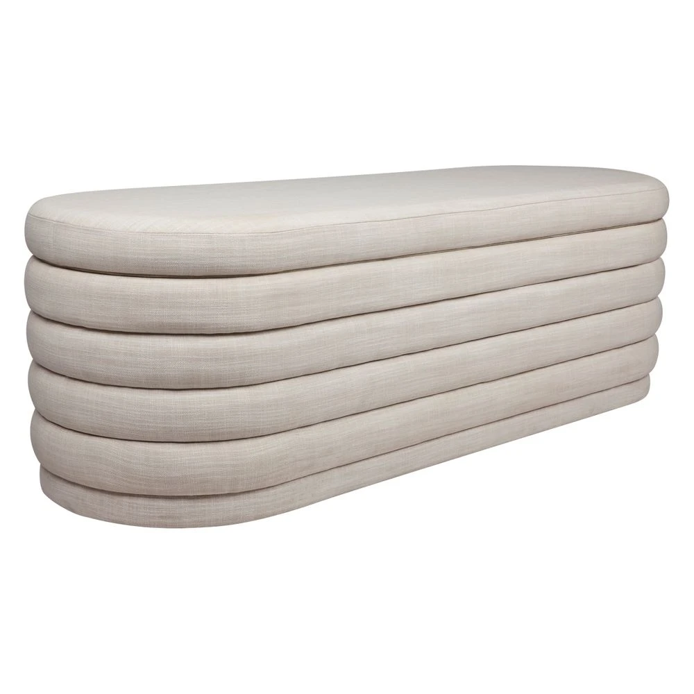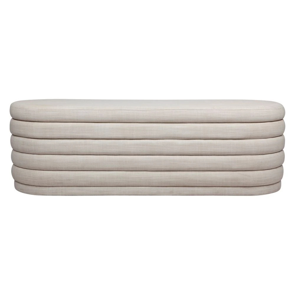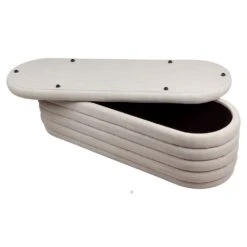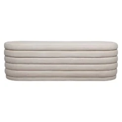 Upholstered in elegant off-white linen, the Demi storage bench ottoman lends a sense of sophistication to any space. Designed with an effortlessly chic cosmopolitan mood in mind, the panelling detail of the Demi storage bench ottoman enhances its textural quality and adds to its natural organic feel. As practical as it is beautiful, lift the lid on the Demi to reveal ample storage – easy access for throws and cushions when styled as a bed end, hats and shoes when adorning a stylish entry or an Ideal hiding spot for books and games when used as additional living room seating. Bringing modern character to a range of interior styles, the Demi storage bench ottoman is also available in black, olive or nude velvet and tactile white boucle.