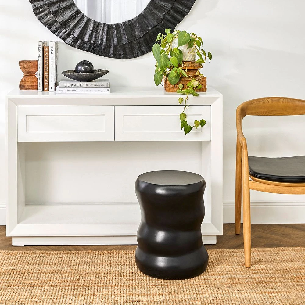 Enhance your indoor or outdoor space with this sculptural concrete side table. Its organic, wavy design adds a modern touch to any setting, while its durable construction ensures longevity. Available in two stylish colours, this versatile piece is perfect for both function and form. Ideal as a side table or decorative accent, it’s a must-have for contemporary interiors and exteriors alike.