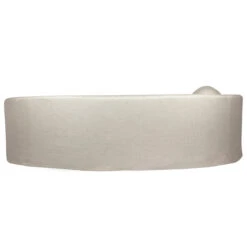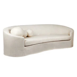 A statement piece inspired by a high-end Parisian apartment aesthetic with curved silhouette and rounded cushions. Designed for style, this sofa boasts a refined allure that combines contemporary forms with romantic and feminine flair. Upholstered in an easy to remove fitted slip cover for periodic cleaning. Frame made from sturdy solid hardwood timberwith webbing and inner spring suspension. This standout piece is sure to make a statement in any modern living room with complimenting round cushions.