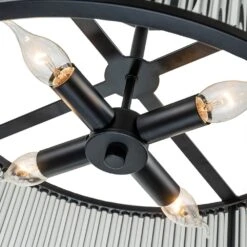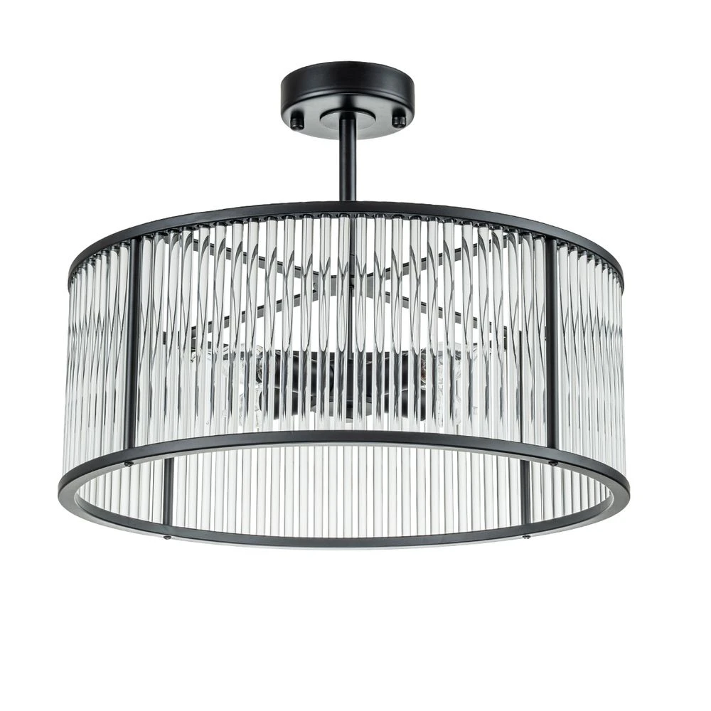 Understated luxury, the Farrah Flush Mount features a stunning rounded shade with a stylish black finished metal frame encasing a mesmerising display of cylindrical glass rods. Inspired by modern moods, the Farrah flush mount creates a single, elegant statement that would work well on low ceilings, or centred above a chic dining space, creating an atmosphere of indulgence with its opulent glow. Also available in a brushed brass finish.