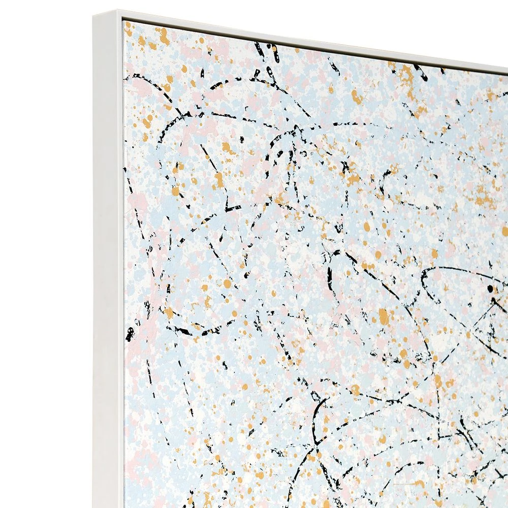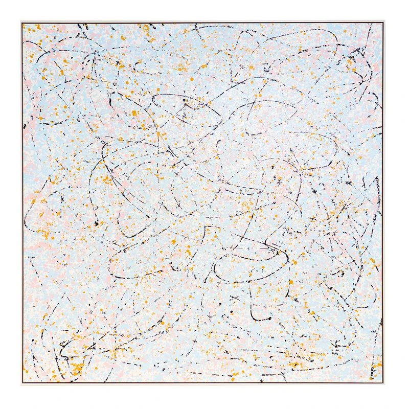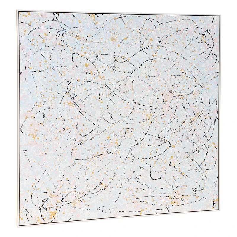 The artistic, hand-painted brilliance of Formless Perfection introduces avant-garde elegance to any interior. Inspired by the dynamic style of Jackson Pollock, this masterpiece boasts pink, blue, and yellow hues artfully splattered on a canvas of pristine white. The interplay of colors creates a visually stunning composition, capturing the essence of the iconic abstract expressionist movement.