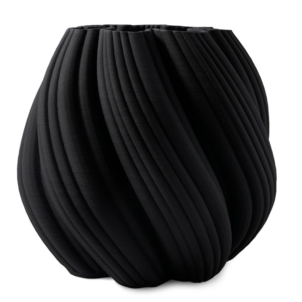 Elevate your décor with this textured, 3 dimensional porcelain vase featuring a striking twist effect design. Available in black and white, its modern silhouette adds texture and elegance to any room. Perfect as a standalone piece or for floral arrangements, this vase offers both form and function for contemporary homes.
