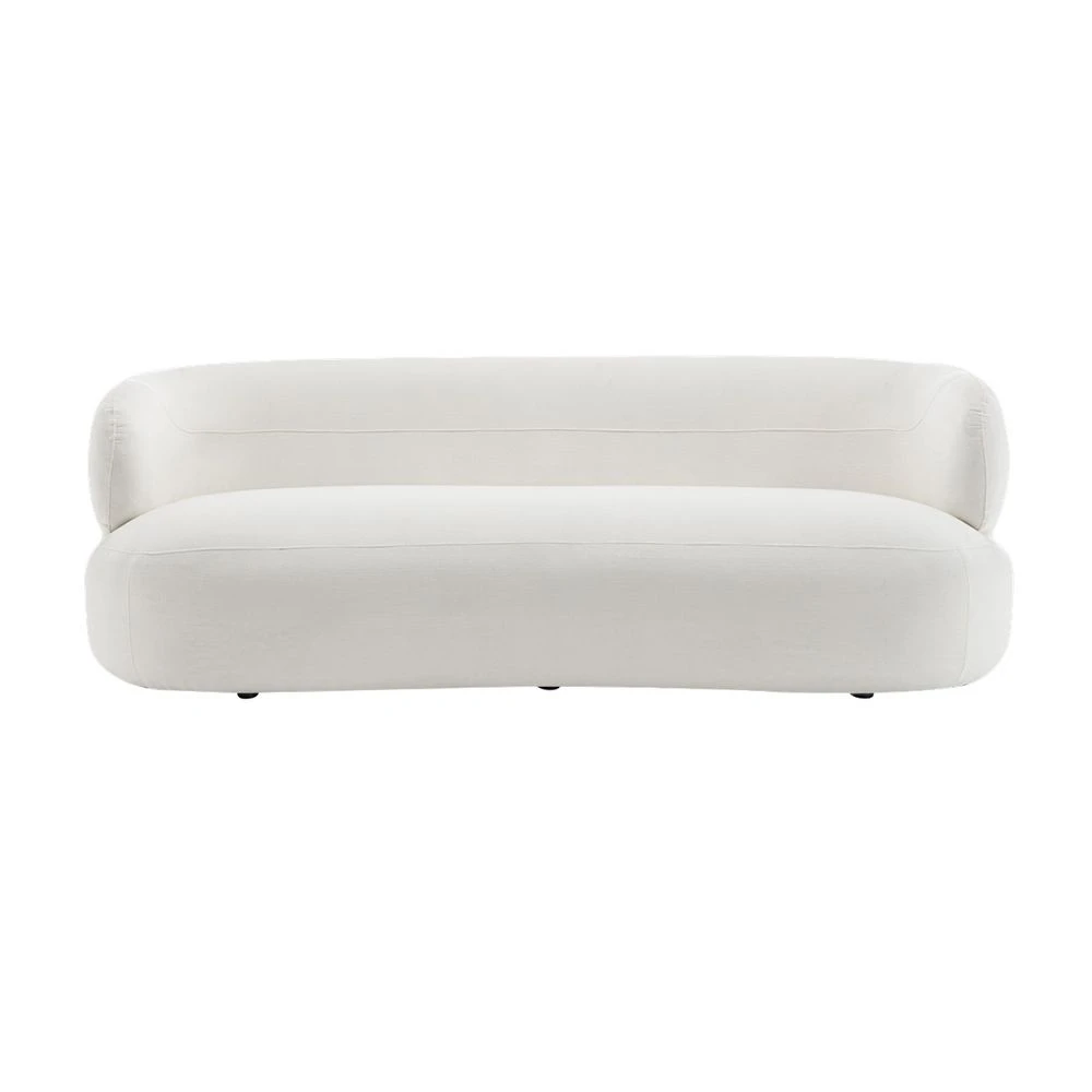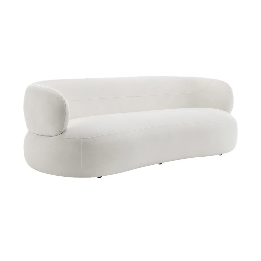 Introducing the Greenwich 3 Seater Sofa in Ivory Chenille, the perfect addition to elevate your living space. This stunning curved sofa boasts a soft and textured fabric, adding a touch of elegance to any room. Its minimalist design and sculptural silhouette make it a versatile piece that complements both contemporary and modern interiors. And the best part? It comes at an affordable price, making it a must-have for any home.