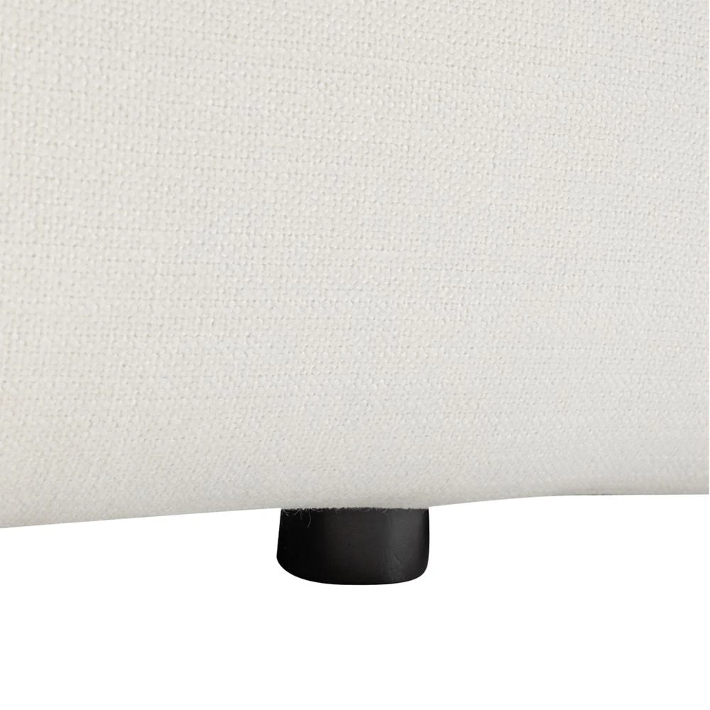 The upholstery composition is 100% polyester, with a reference of FTORREY-WHITE. Please note that due to the individual dyeing process, slight color variations may occur between fabric runs. We recommend Scotch Guarding to protect the fabric from stains and dirt. This product is not suitable for home cleaning and should only be professionally dry cleaned.