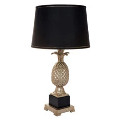 For a unique table lamp to go with your eclectic sense of style, look no further than the Harper Pineapple Table Lamp. With the textured resin design, gold leaf pineapple leaves, this lamp will give off a warm, ambient glow wherever you decide to place it. Set it on your entryway side table and mix it in with your favourite photos and decorative pieces to create a cool, funky vignette to welcome guests into your home. Finished with a black linen tapered drum shade with gold trim