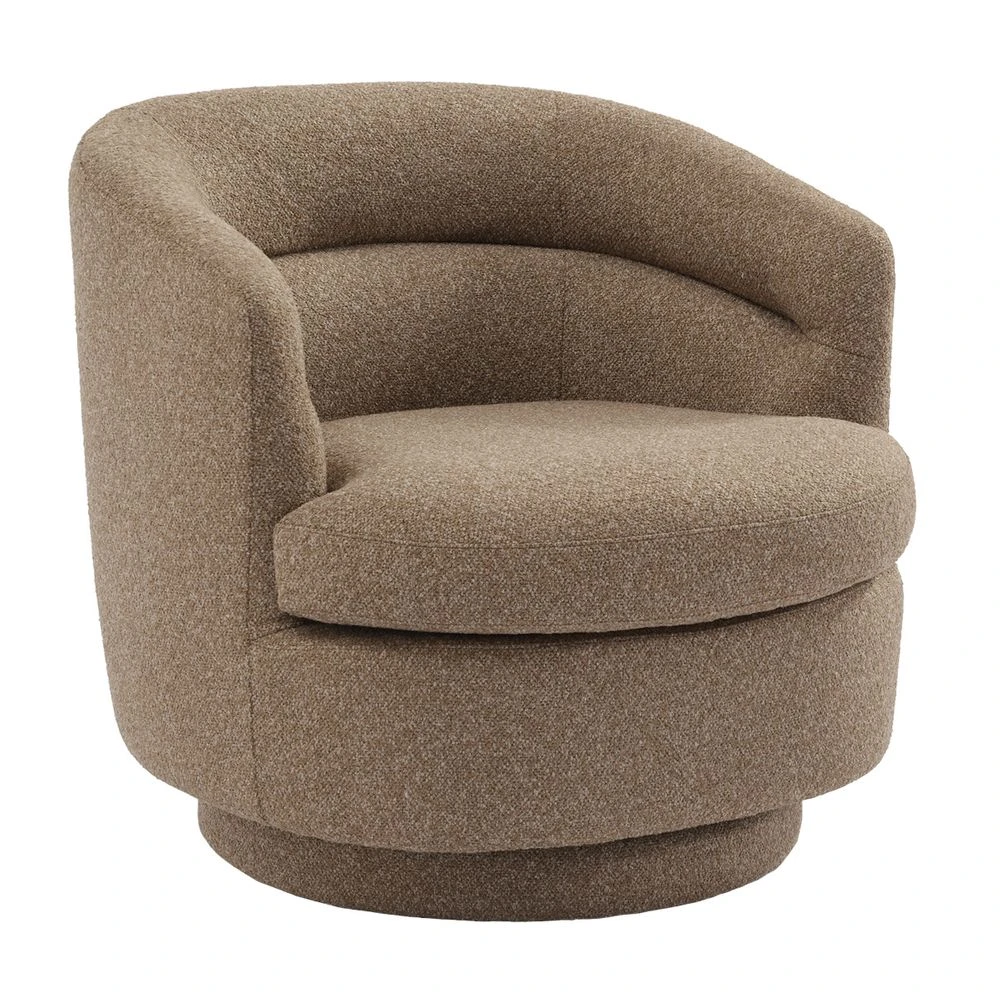 Continuing to dominate modern interiors, the love affair with curved furniture gains momentum as we embrace feminine forms and sumptuous upholstery. Indulge in the epitome of contemporary elegance with the sleek Holly Swivel range. Featuring timeless appeal with a modern curved profile, 360-degree swivel action, and detailed channeled paneling in luxuriously soft looped yarn bouclé. Tailored to perfection, a sturdy hardwood frame combines meticulous craftsmanship with practicality in three on-trend, statement upholstery colours: Cocoa Mocha, Warm Grey, and Natural. Perfectly paired in living rooms, office spaces, or a beautifully styled bedroom.