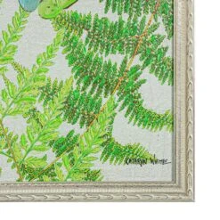 This exquisite artwork by Kathryn White, a celebrated American artist, is a vibrant celebration of nature’s elegance. Featuring intricate fern leaves, delicate hydrangeas, and enchanting butterflies, this painting reflects Kathryn’s inspiration from the classic charm of European landscapes and her Massachusetts studio. Painted with timeless techniques, it captures the seamless blend of tradition and contemporary artistry. A perfect addition to elevate home decor, its vibrant green palette radiates tranquillity and sophistication.