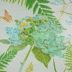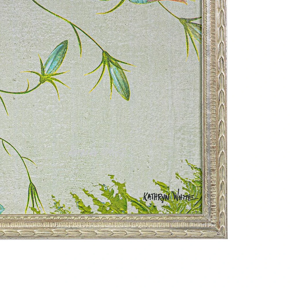 This stunning artwork by Kathryn White, an accomplished American artist, is an homage to nature’s charm, blending vibrant hydrangeas, butterflies, and ferns. Inspired by her experiences across Europe and the Cotswold Hills, Kathryn masterfully fuses classical techniques with contemporary flair. Her intricate detailing in watercolours and egg tempera highlights her versatility. This piece captures timeless elegance, perfect for any decor.