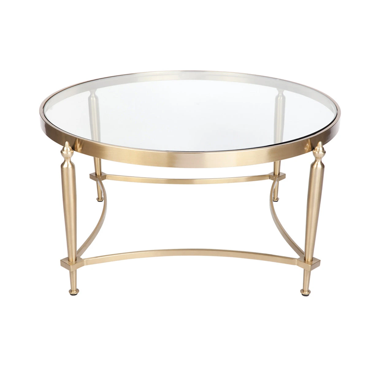 The Jak Table range adds a hint of classic character reinterpreted for modern living with strinkingly handsome detailing, finished in a brushed gold stainless steel frame. Understatedly elegant, the rounded silhouette of the Jak coffee table sits perfectly as a supporting act to large furniture pieces in your living space. With a clear toughened glass tabletop, these pieces offer very practical living and leave a visually light footprint that will stand the test of time