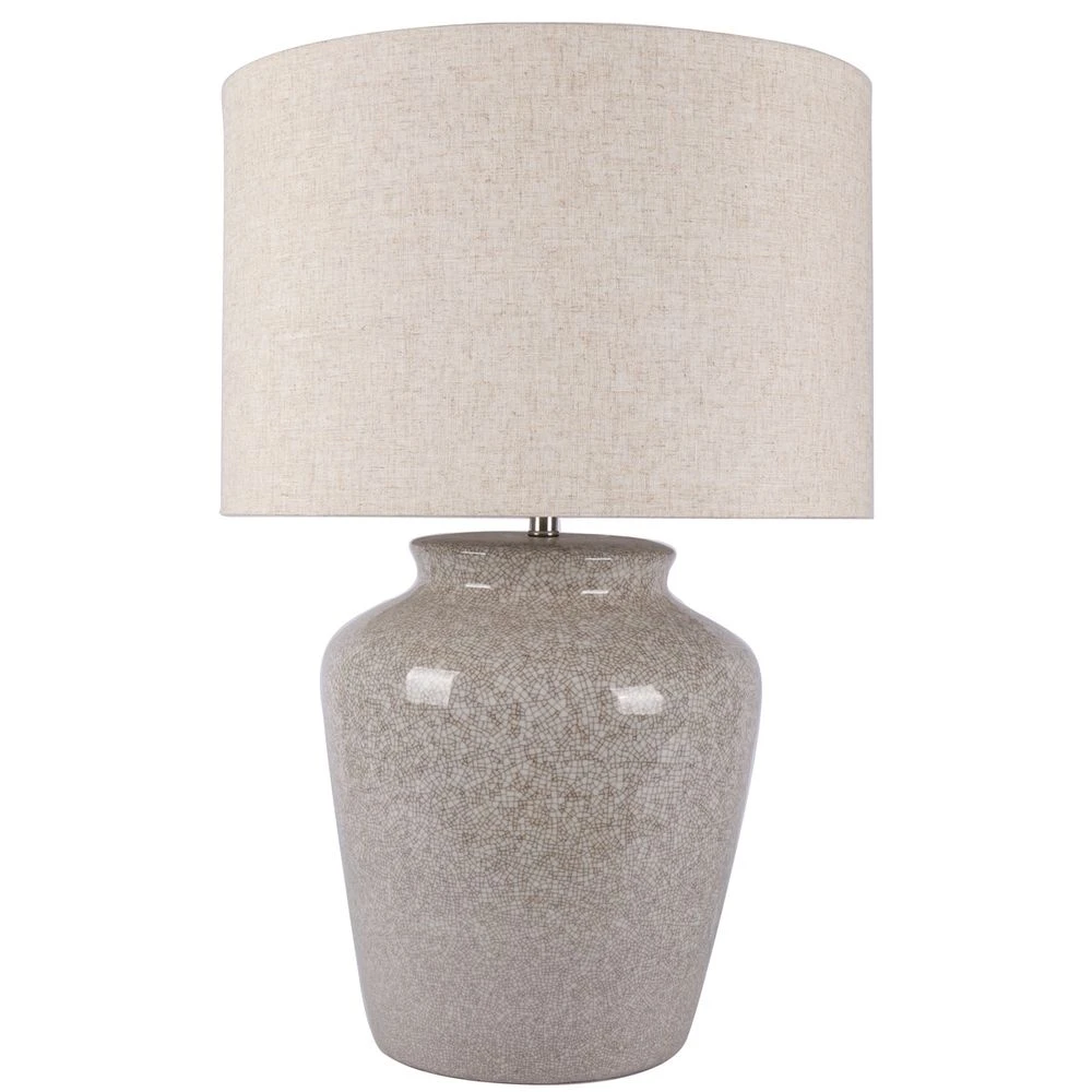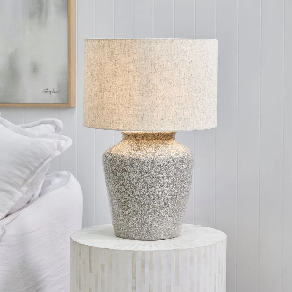 Add a touch of timeless elegance to your home with this sophisticated ceramic table lamp. The beautifully textured, crackled glaze finish in a warm beige tone complements a wide range of interiors. Paired with a natural fabric shade, this lamp offers soft, ambient lighting, perfect for creating a cosy and inviting atmosphere in your living room, bedroom, or hallway.