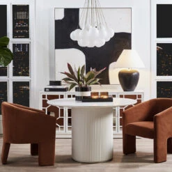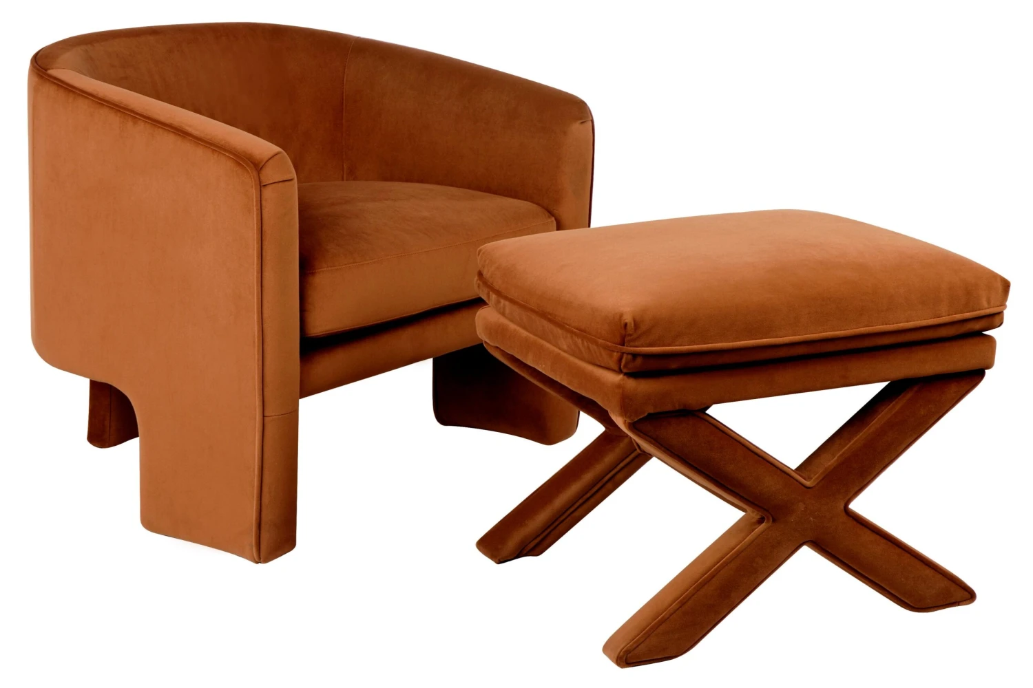 Boasting a curvaceous silhouette that resonates with ongoing trends, the Kylie arm chair, upholstered in a luscious caramel velvet, features fully upholstered tripod legs and detailed piping. Inspired by mid-century modern design, itβs contemporary curves and sleek tailored finish infuses any interior with enviable style.