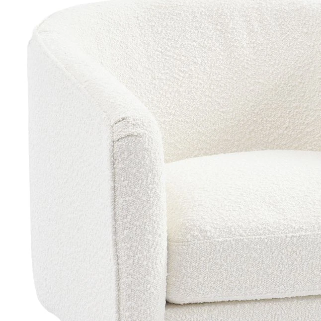 Pure luxury, sink into the Kylie arm chair and be embraced by her contemporary curves. Inspired by mid-century modern design, Kylie is upholstered in a gorgeous white boucle, resonating with ongoing trends for tactile textures and calming curves. The clean, tailored lines, upholstered tripod legs and detailed piping add to Kylies modern appeal. Available in a range of sumptuous colours and fabrics, our popular Kylie arm chair infuses interiors with undeniably style.