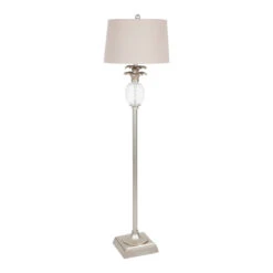 Create a seaside vibe with a touch of luxe with this Pineapple shape floor lamp. The antique silver resin base plus the clear glass cut pineapple is finished off with a grey linen tapered drum shade.