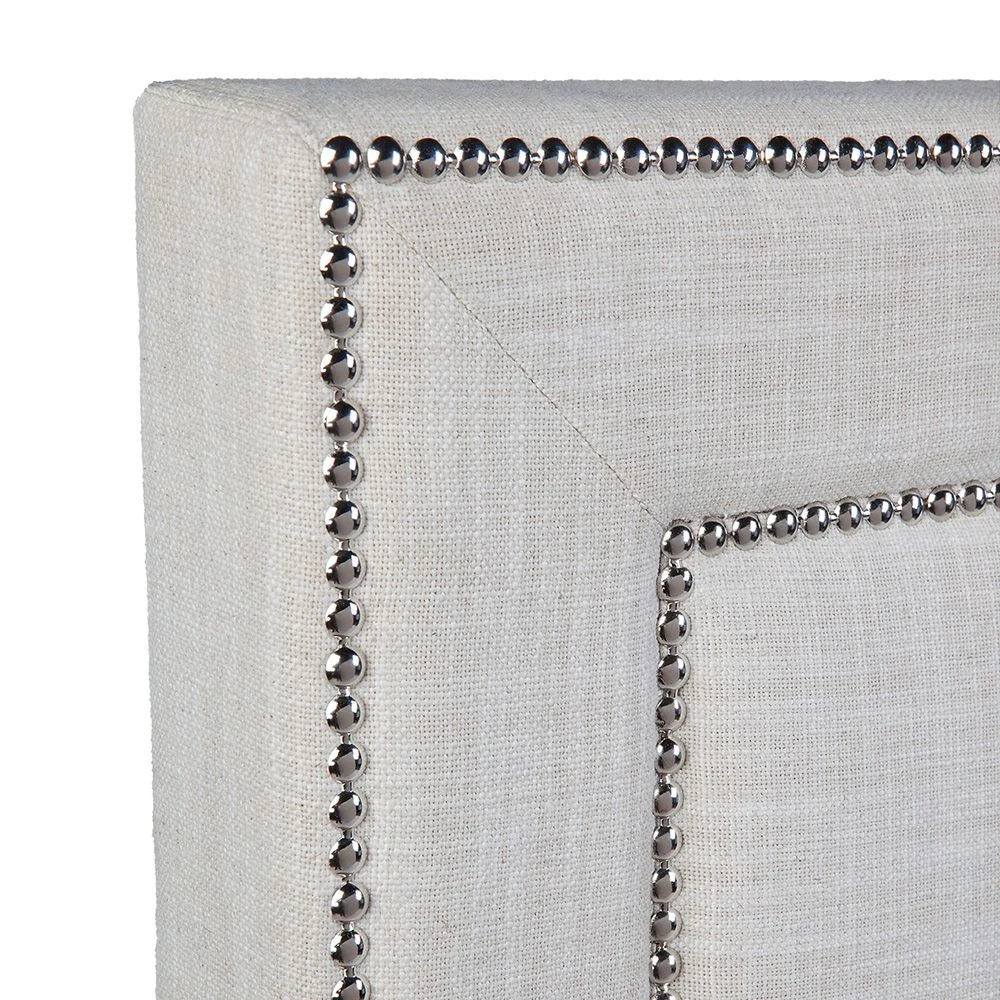 A classic contemporary style King size headboard, the Manhattan Studded King Bedhead features a classic silver stud detail edge and is upholstered in an elegant natural linen blend fabric. Suitable for most bedroom styles, the Manhattan Studded King Bedhead blends seamlessly into a classic or contemporary home interior. Add our elegantly upholstered Manhattan Ottoman in the same fabric for a completely tailored bed end feature.