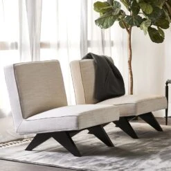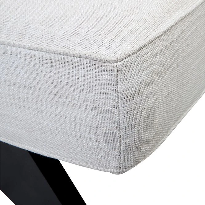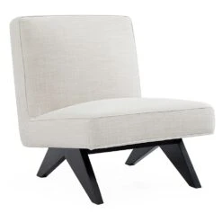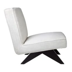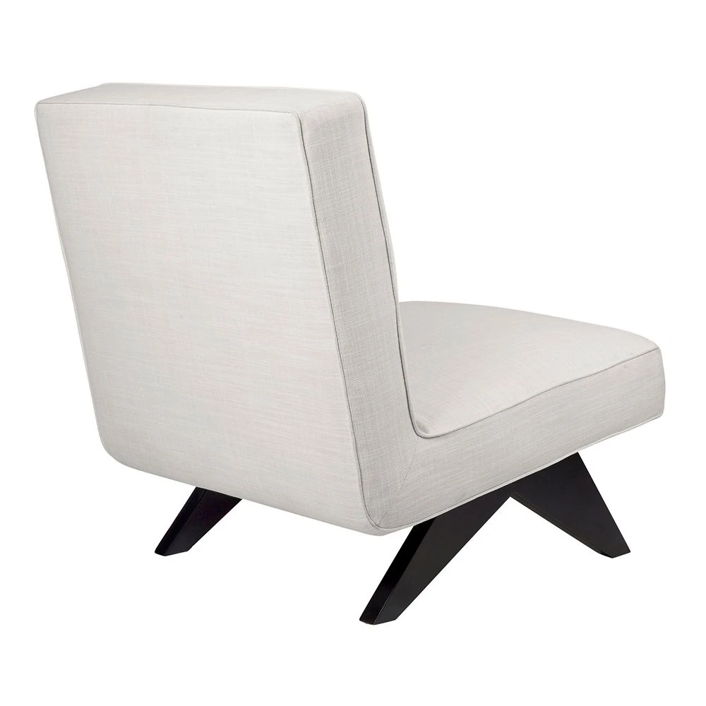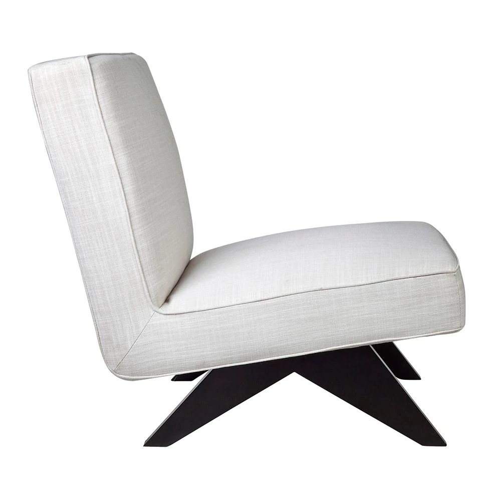 Upholstered in a timeless off-white linen blend fabric, the paired-back aesthetic of the Martyn slipper chair brings an understated flair to interior spaces. Expertly crafted, angled timber legs in a chic matt black painted finish create a striking contrast feature to the streamlined seat profile – confidently embracing minimalist modern design. Ideal in any living or bedroom zone, the Martyn slipper chair is also available in olive velvet, charcoal linen and white bouclé.