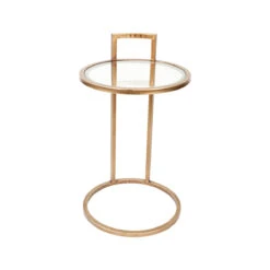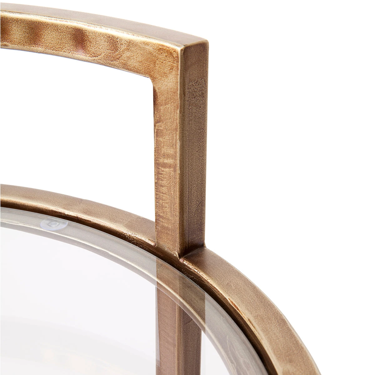 Simple geometric shapes combine to create a side table that offers a clean, contemporary aesthetic suitable for a variety of uses. Perfectly proportioned as a sofa accompaniment, the Maxie side table is constructed from metal and hand finished in an elegant antique gold. Complete with a tempered glass top, the Maxie side table lends practical flexibility to your living space whilst leaving a visually light footprint.