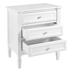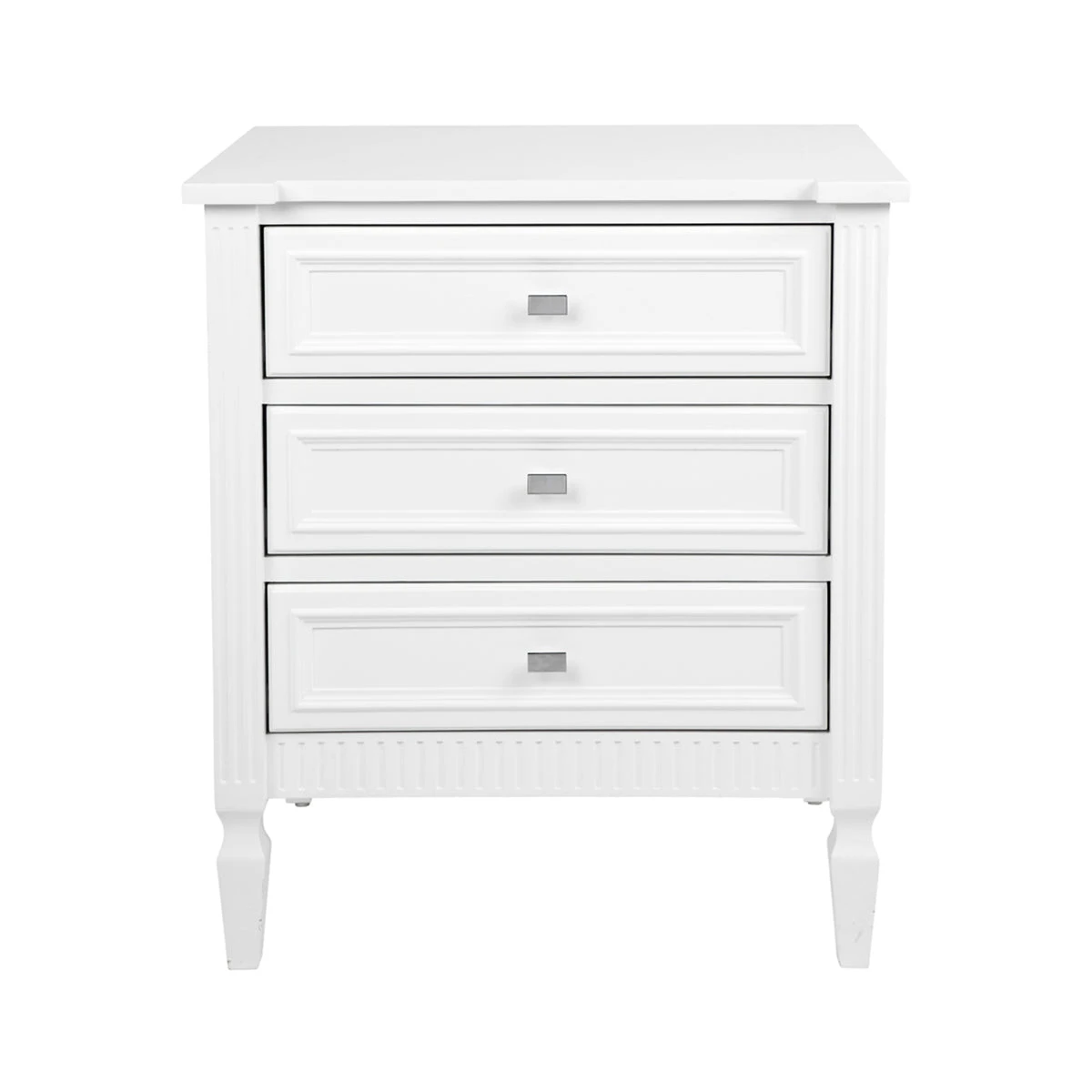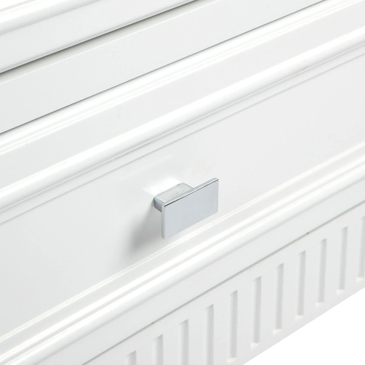 Inspired by a desire for timeless pieces, our Merci range encapsulates a contemporary silhouette with classic moulded framing and understated chrome handles. Finished in an elegant black or white satin, the Merci range transcends from a sophisticated coastal or refined Hamptons to a classic contemporary interior style. Designed with all of the definitive elements for functional and storage solution.In two size options the Merci bedside table does not compromise storage needs in your bedroom.