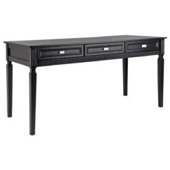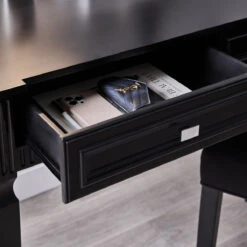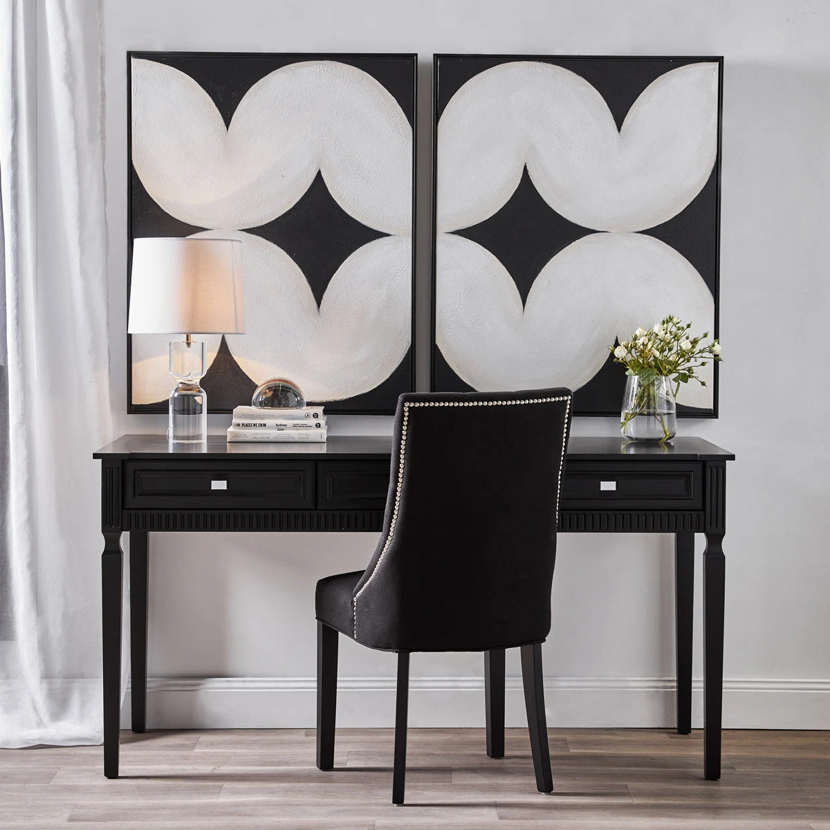 Inspired by a desire for timeless pieces, our Merci range encapsulates a modern classic silhouette with clean lines, detailed moulded framing and elegant turned legs. Finished in timeless black satin and complete with three easy glide drawers, the generous proportions of the Merci desk incorporate all the definitive elements into a functional and stylish design. The ultimate upgrade for your office or studio work space.