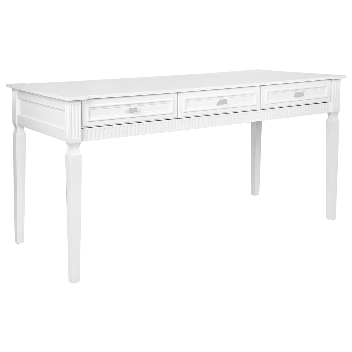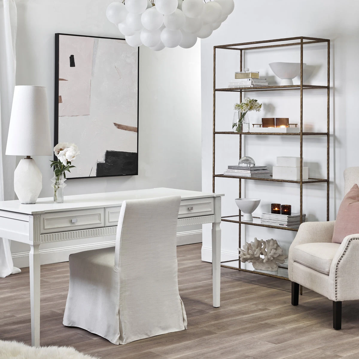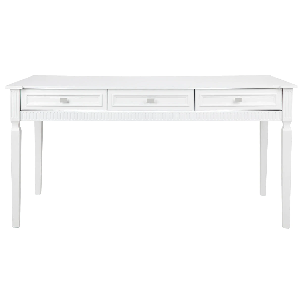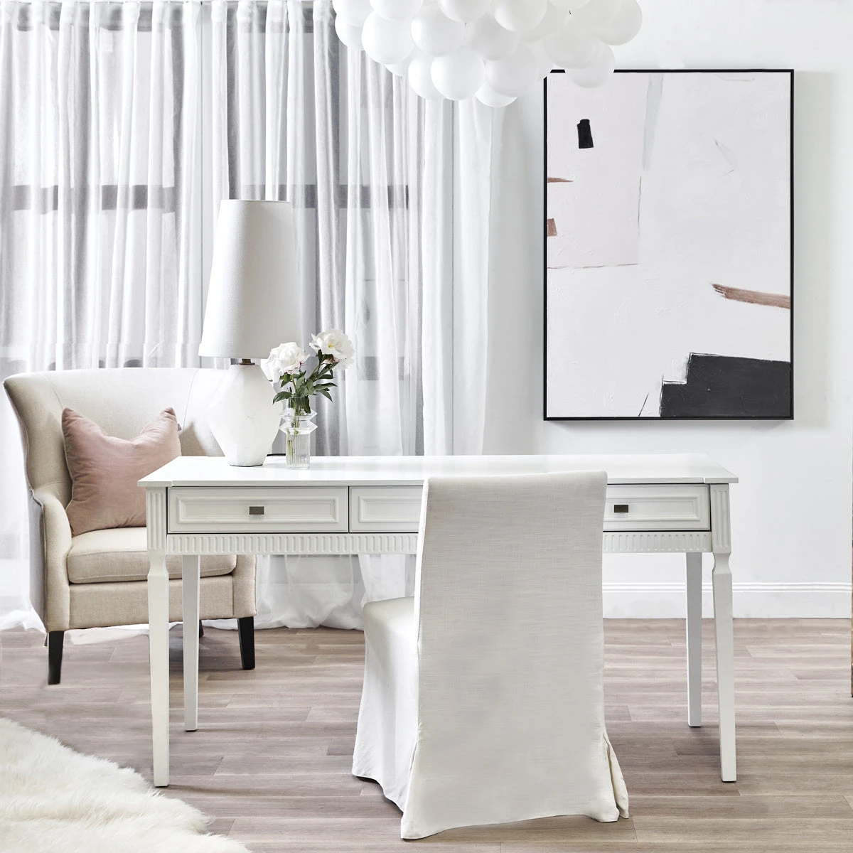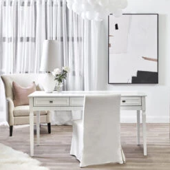 Inspired by a desire for timeless pieces, our Merci range encapsulates a modern classic silhouette with clean lines, detailed moulding and slender turned legs. Finished in an elegant white satin and complete with three easy glide drawers, the generous proportions of the Merci desk incorporate all the definitive elements into a functional and stylish design. The ultimate upgrade for your office or studio work space.