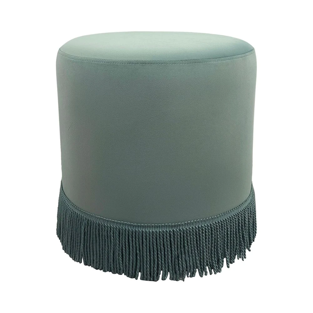 Introduce a touch of elegance to your space with this round velvet fringe ottoman, available in soft pink, ivory, and duck egg blue velvet. Featuring luxurious velvet upholstery and playful fringe detailing, it offers both style and functionality. Perfect as a footrest, extra seat, or statement decor piece, this versatile ottoman enhances living rooms, bedrooms, or dressing spaces with charm and sophistication.