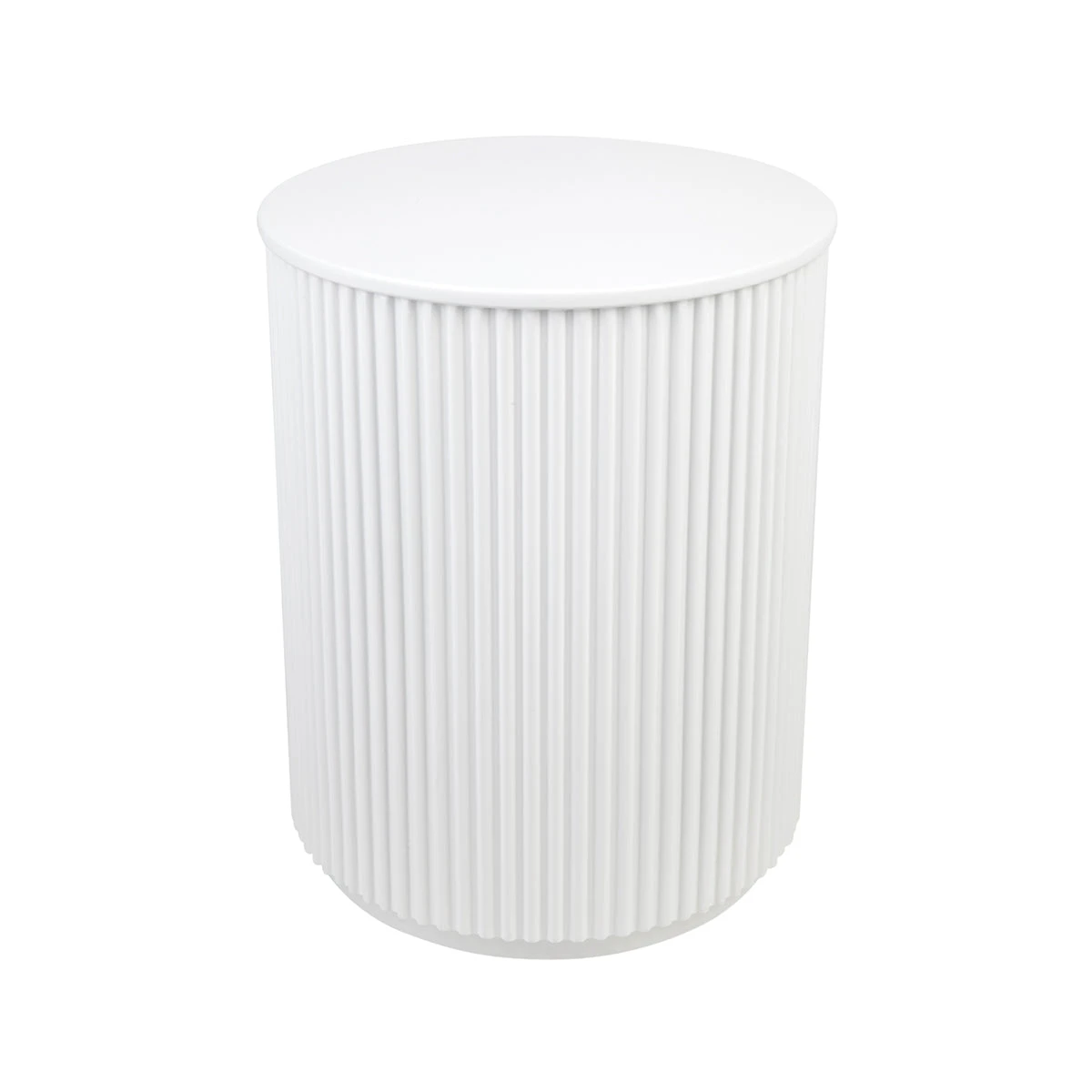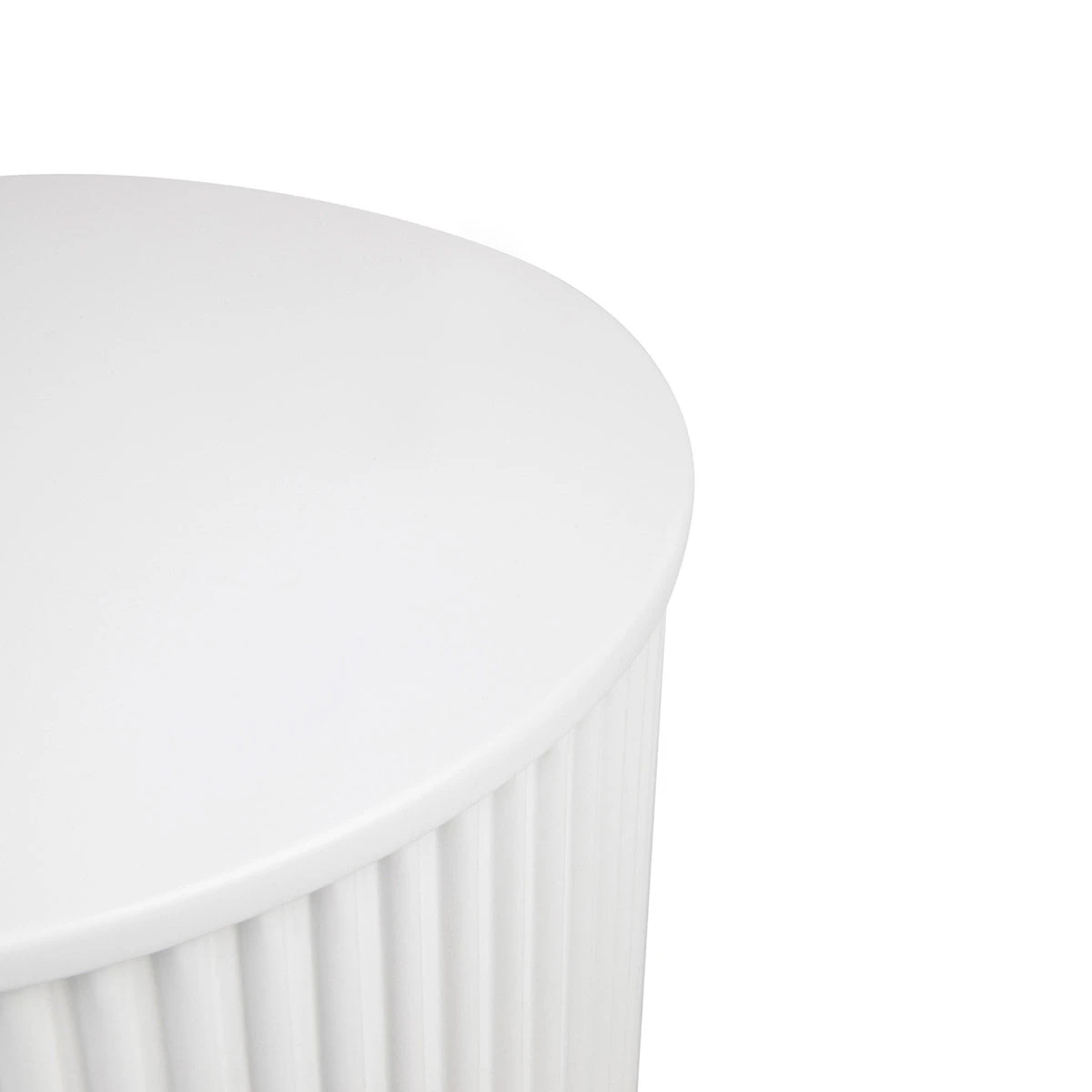 Uniting organic rounded surfaces with linear patterns, the Nomad side table delivers a natural aesthetic to a contemporary design. A fresh white satin finish provides a crisp visual that enriches its textured facade. Pair with another at opposing ends of a sofa for a more dramatic effect or in your bedroom for a sleek and streamlined finish. Alternatively arrange on its own as an adaptable living room piece to suit your everyday needs.