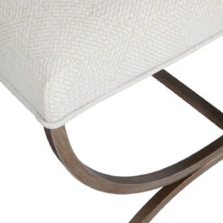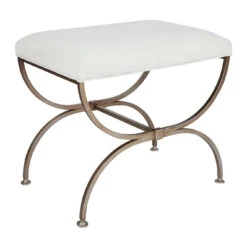 Natural cotton viscose upholstered stool. Cross leg style made with solid iron antique gold frame