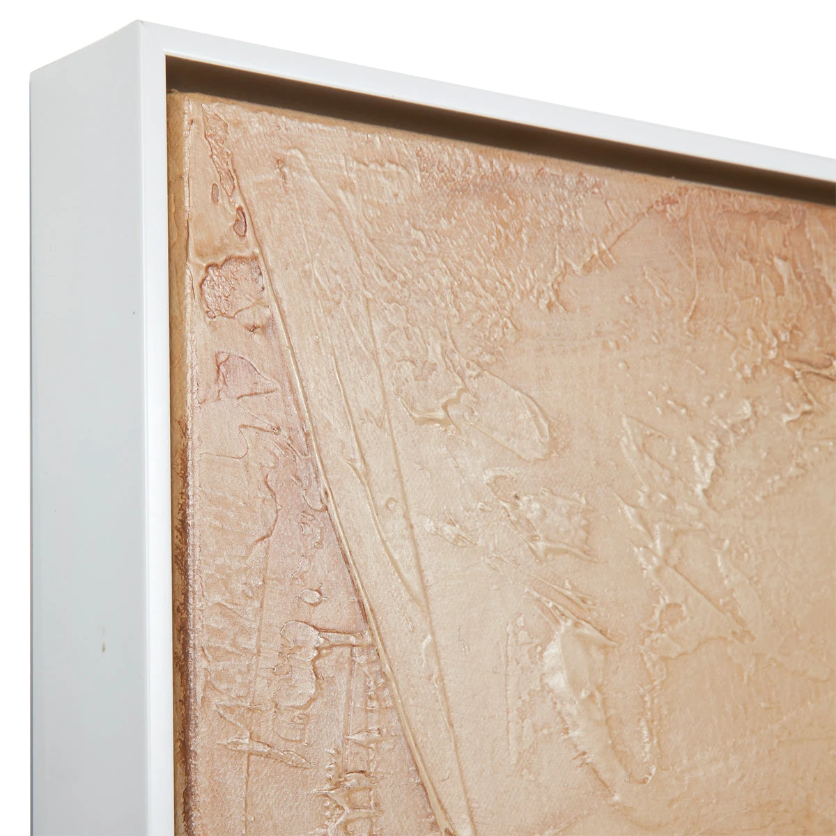 Gorgeous three dimensional texture combines with earthy warmth in Ochre Dream oil on canvas. A substantial 140cm square, curvaceous forms interlock with bold imperfect lines and shapes to create an artwork that is strikingly confident and interesting, yet subtle enough in its neutral tones and understated composition to compliment any interior space. Encased in a matt white shadow box frame, each piece is individually hand painted on linen canvas.