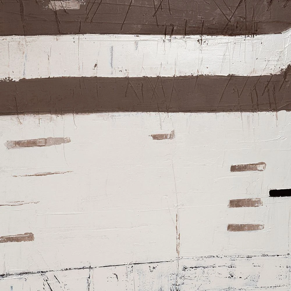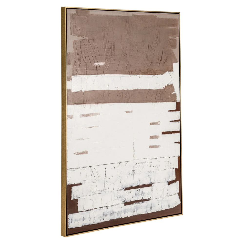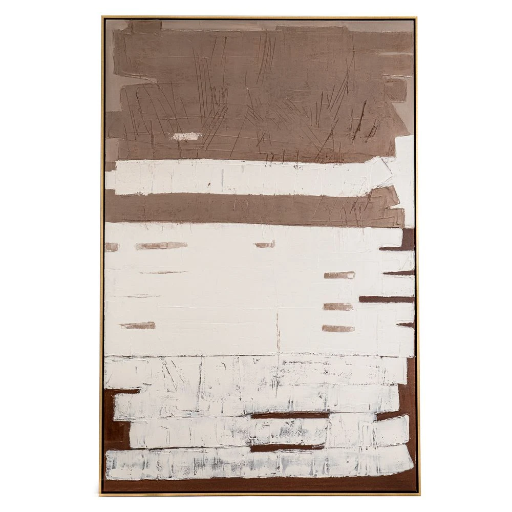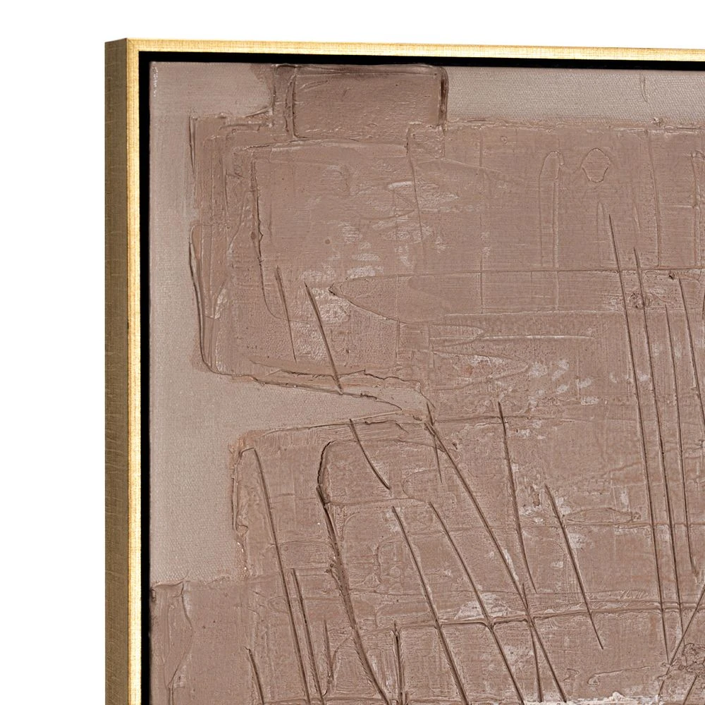 Warm, natural tones of stone, clay and earth create a balanced composition where bold, horizontal brush strokes are heavily layered with texture, tone and deep artist markings. Organic Motions series 1 is hand painted in oil on canvas and mounted in an elegant antique gold finished shadow box frame. A striking statement at 100 x 150cm, Organic Motions series 1 can be paired with Organic Motions series 2 for a fusion of contemporary abstraction.