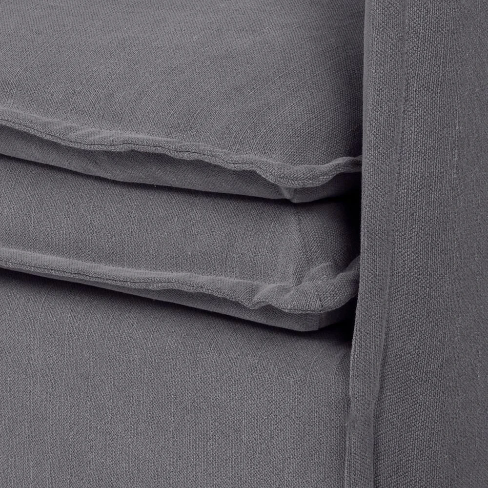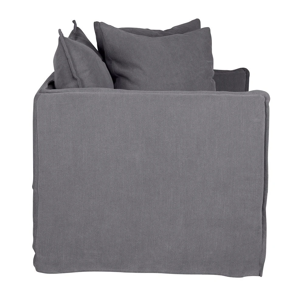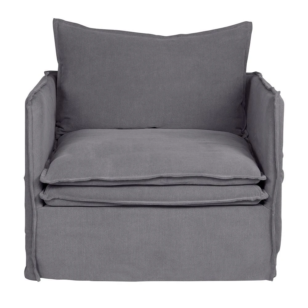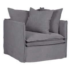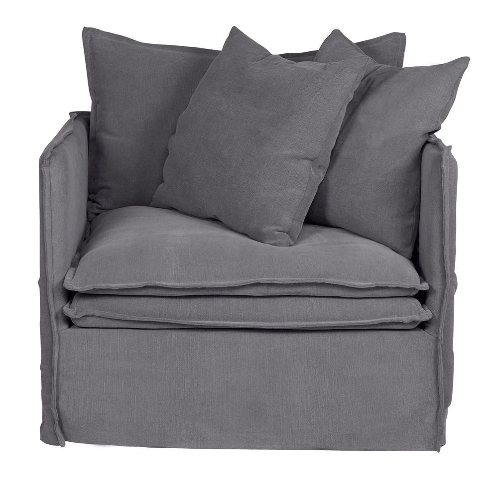 Experience the epitome of Hamptons-inspired luxury with our Palm Beach Armchair. Indulge in pure comfort with soft feather and foam-filled seating, ensconced within a robust hardwood frame. Seamlessly blending elegance with practicality, draped in slate grey linen, a harmonious blend of 50% cotton and 50% linen. Featuring removable covers for effortless maintenance and reversible cushions for enhanced adaptability, elevate your interior design with the exquisite sophistication of the Palm Beach collection, available in white, slate grey, or natural linen, with coordinating sofas to complete the look. Professional dry cleaning services only.
