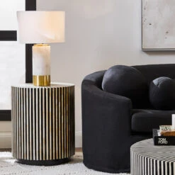 Introducing the Paola Marble Table Lamp – White w White Shade, a stunning addition to any home decor. Made with divine white marble and a gold base, this lamp exudes elegance and sophistication. The white linen shade with gold reflective pvc lining adds a touch of glamour to the overall design. Please note that due to the use of natural stone, the colours and finishes may vary, making each lamp unique and one-of-a-kind.