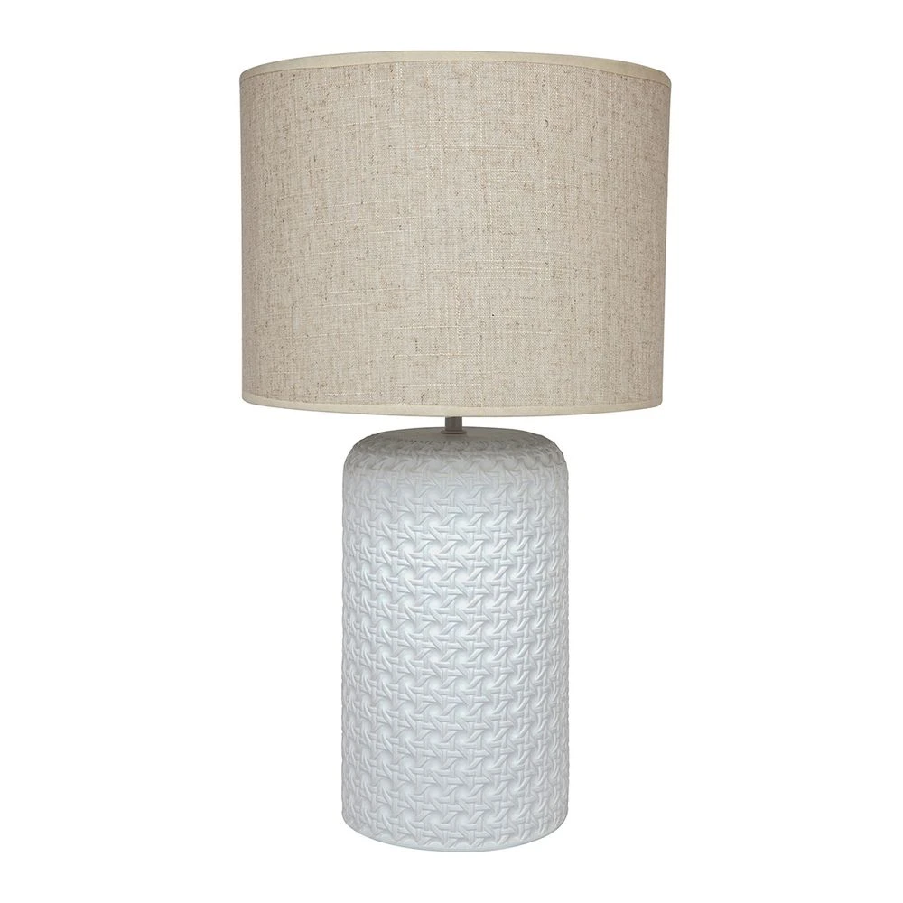 Add gorgeous texture to your neutral interiors with the Patronga table lamp. Featuring a woven rattan patterned base andnatural linen look drum shade, the Patronga table lamp encapsulates coastal finesse. The smooth chalky finish of the matt ceramic base is perfectly complimented by the natural textured shade creating a well-proportioned lamp that can slip seamlessly into any interior scheme.