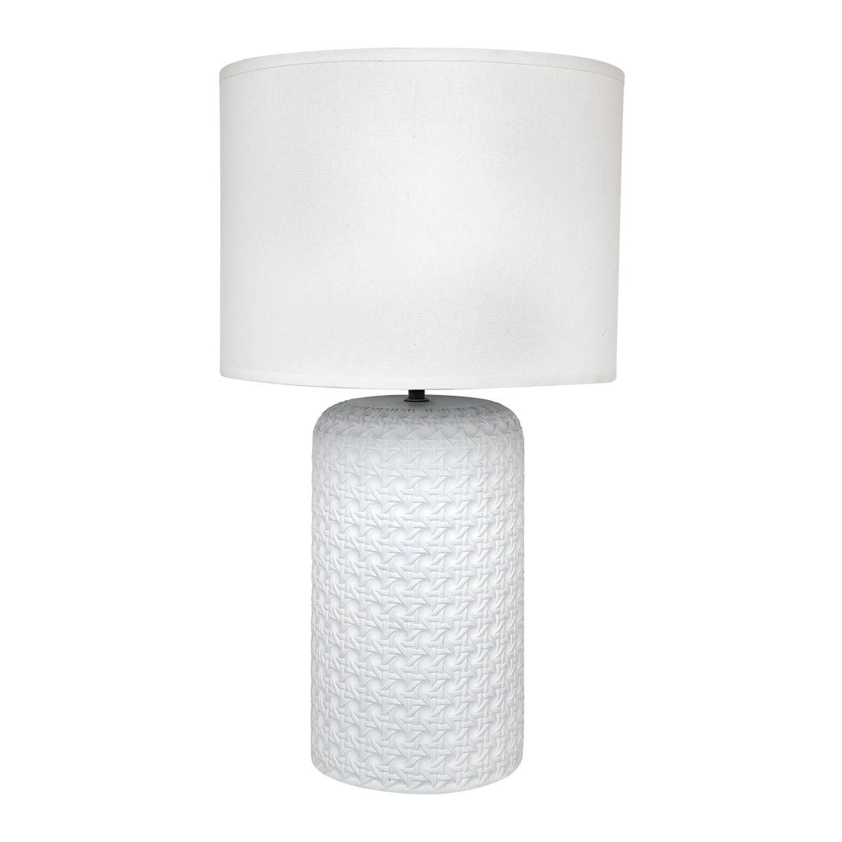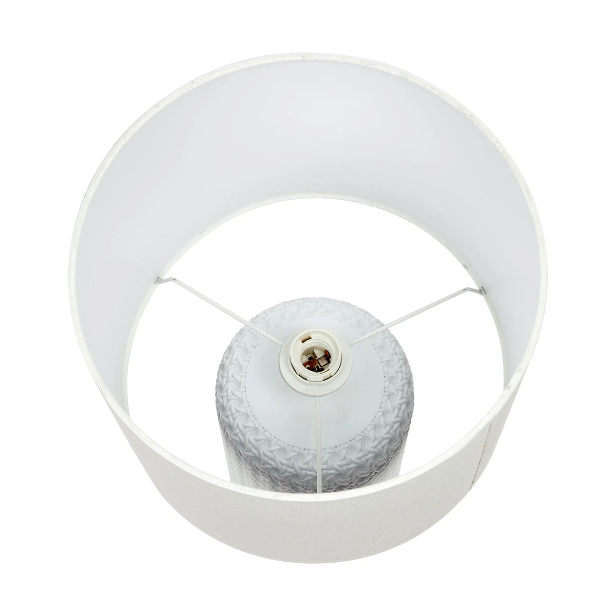 Add gorgeous texture to your neutral interiors with the Patronga table lamp. Featuring a woven rattan patterned base, the white linen look drum shade provides a perfect complement to the smooth, chalky finish of the matt ceramic base creating a well-proportioned lamp that is perfect for bedside lighting and can slip seamlessly into any interior scheme.