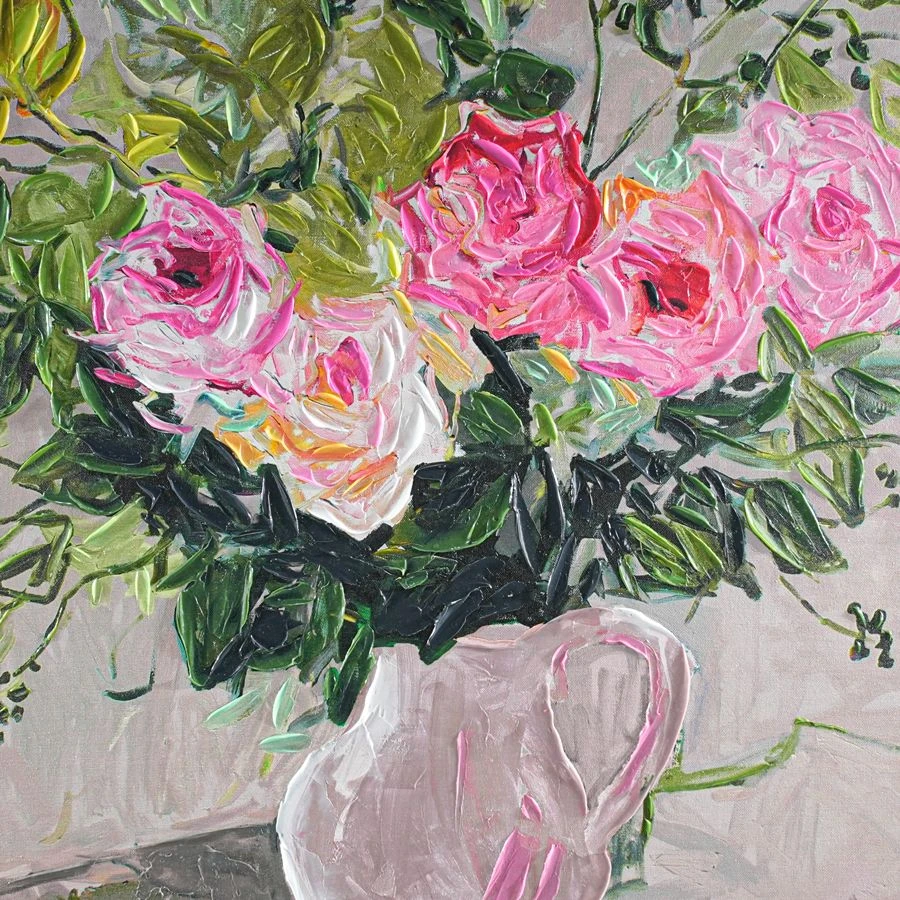 This exquisite still-life artwork, painted by celebrated UK artist Lilia Orlova-Holmes, bursts with vibrant expression and natural inspiration. Depicting a bouquet of blooming roses in a graceful vase, it encapsulates the artist’s bold style and her emotional response to nature’s creativity. Known for her expressive brushstrokes, Orlova-Holmes’ works celebrate seasonal changes and the beauty of flowers, gardens, and landscapes. This piece is a testament to her dynamic artistry, perfect for any fine art collection.